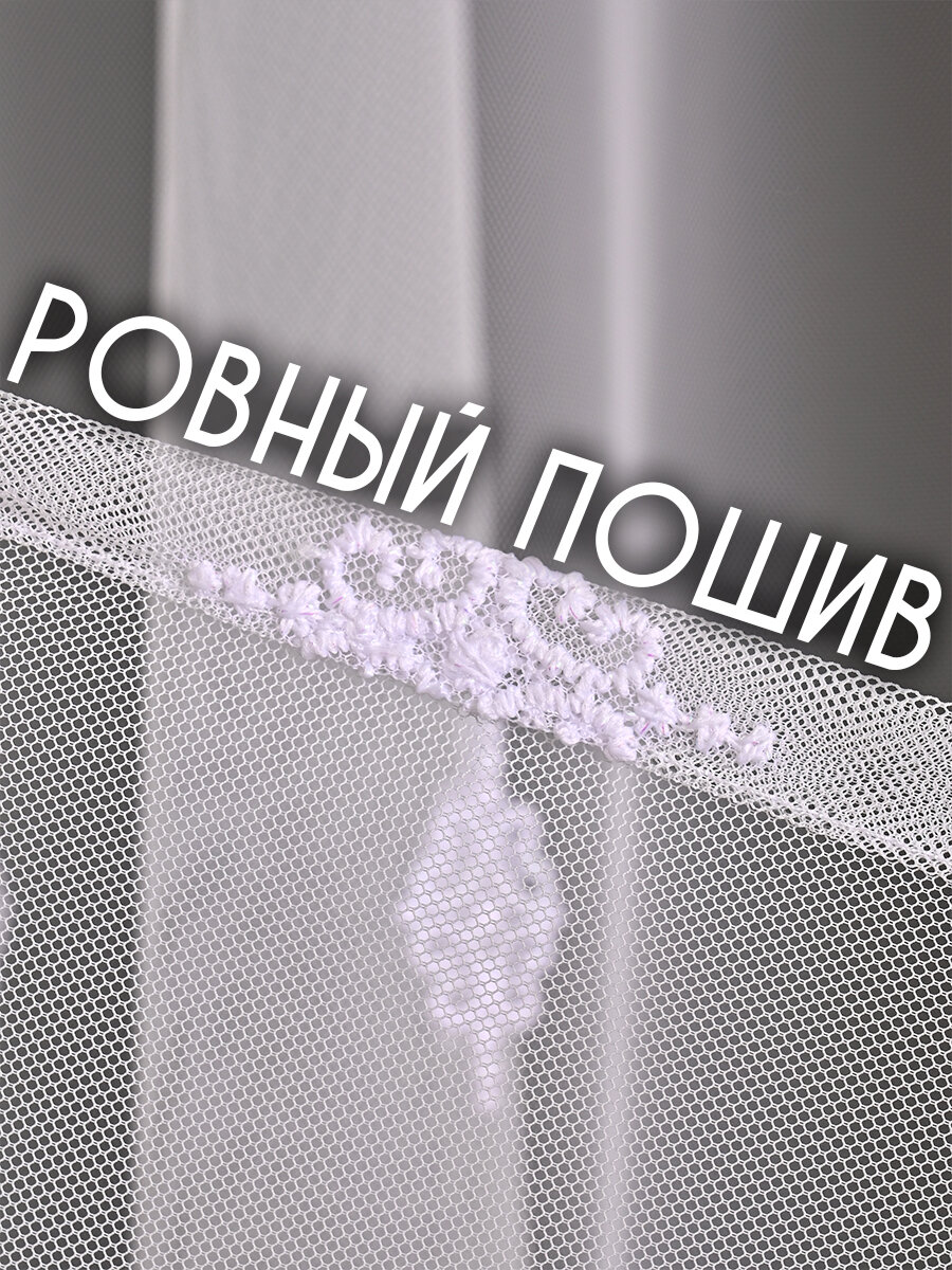 Однотонный тюль грек сетка с узорной вышивкой и люрексом 600x260 см.