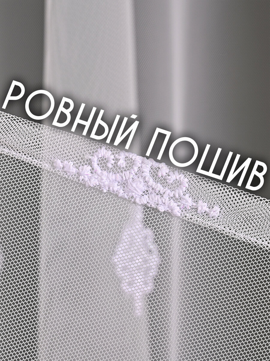 Однотонный тюль грек сетка с узорной вышивкой и люрексом 800x260 см.