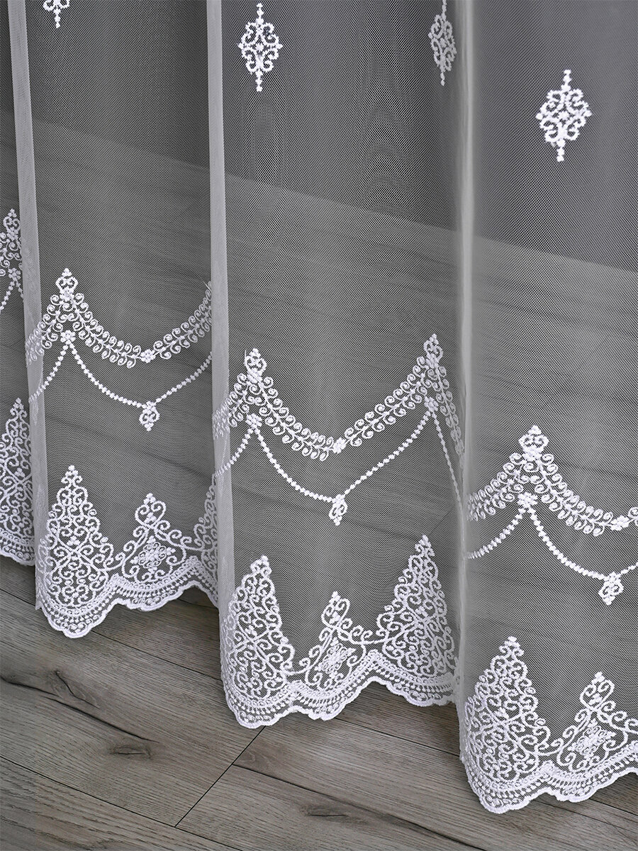 Однотонный тюль грек сетка с узорной вышивкой и люрексом 600x260 см.