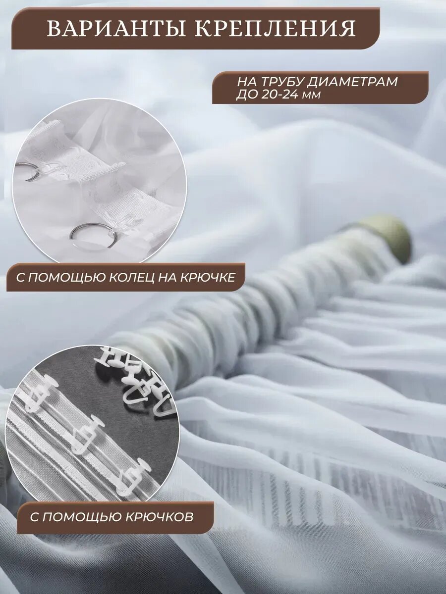 Купить Тюль штора белый с утяжелителем под лен в спальню 600х240