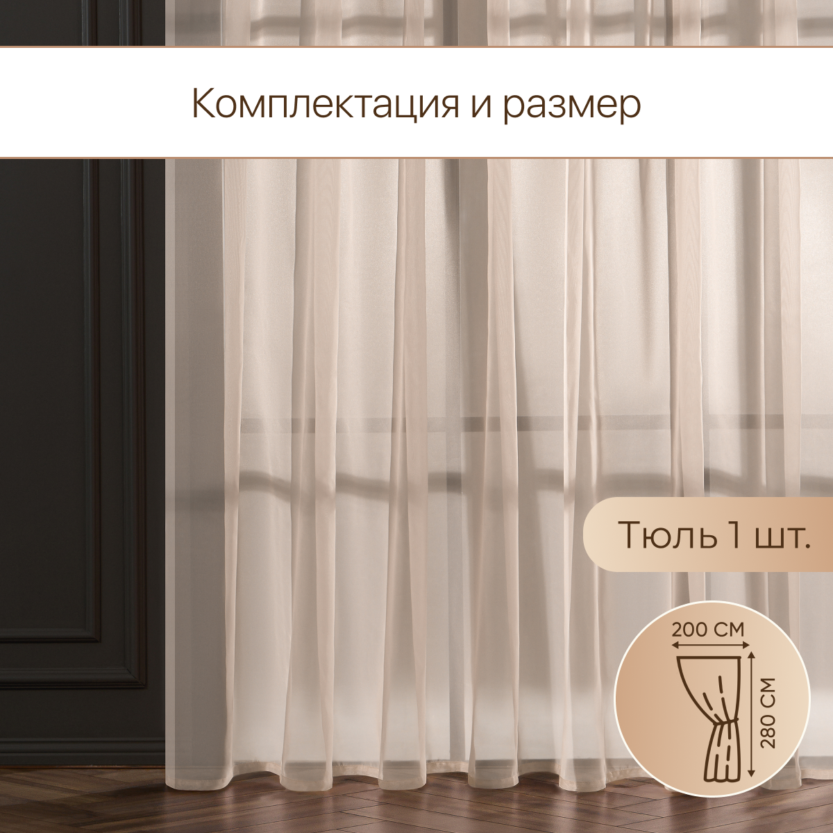 Тюль вуаль VEO 300x280 в спальню, гостиную, детскую, кухню, какао