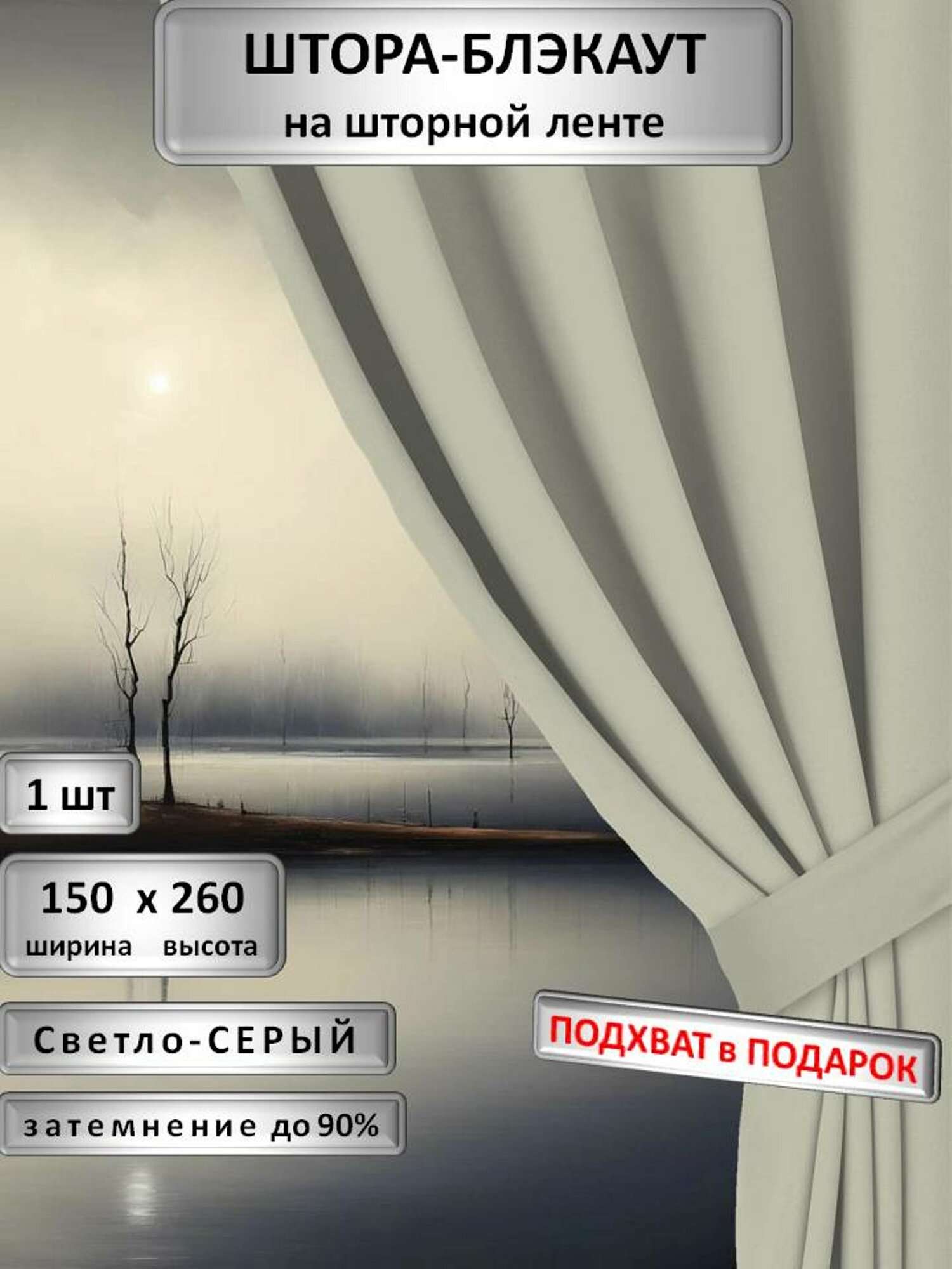 Шторы Блэкаут 150х260, однотонные, светонепроницаемые, 1 портьера, светло-серый интересное: