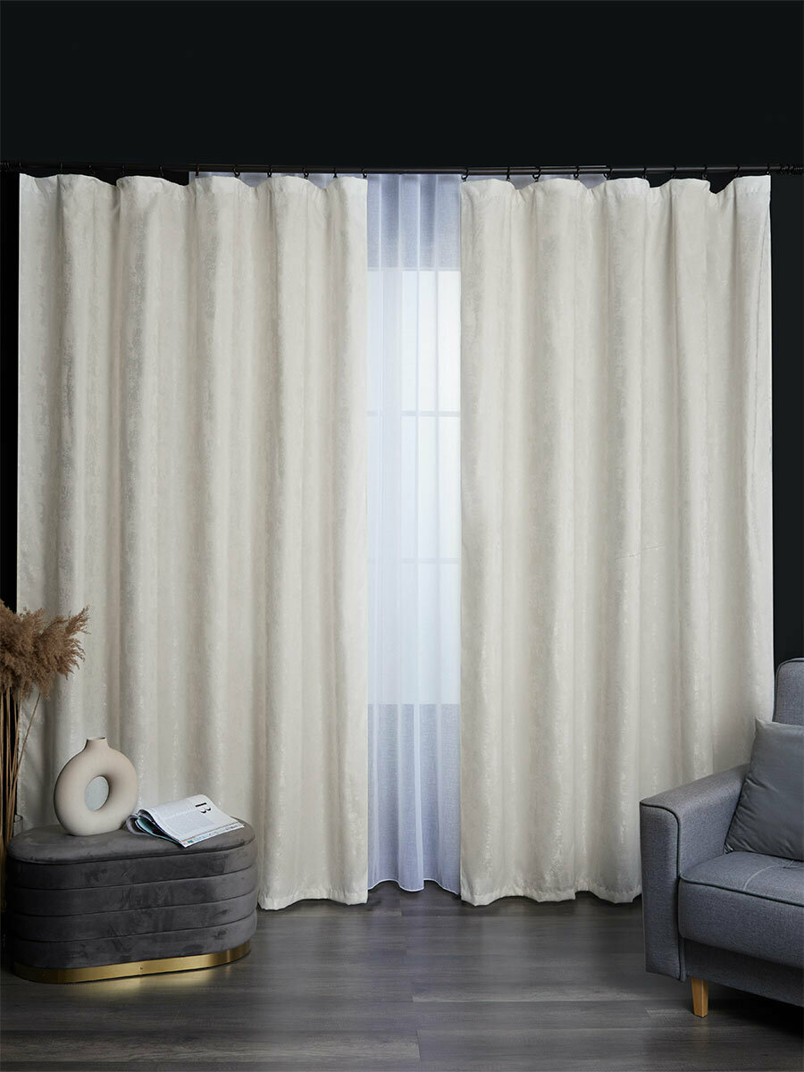 Купить Готовая плотная интерьерная штора(портьера) софт мрамор 250x220 см.(1шт.) молочный