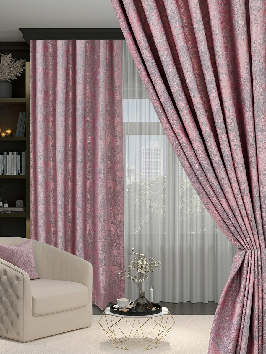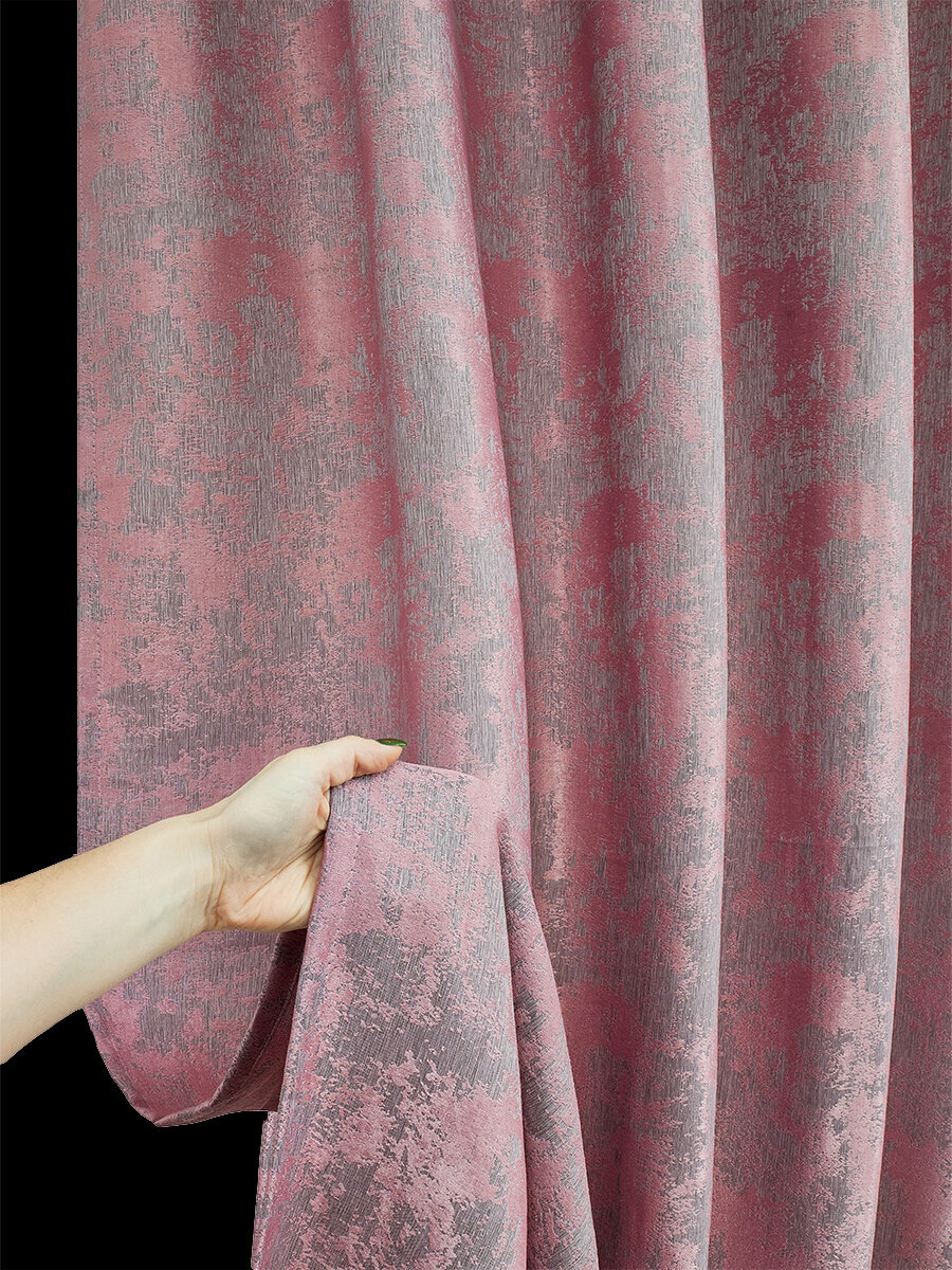 Купить Готовая плотная интерьерная штора(портьера) софт мрамор 250x220 см.(1шт.) розовый