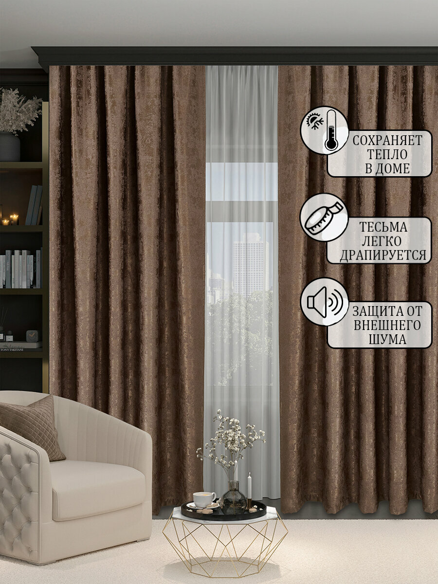 СохранитьГотовая плотная интерьерная штора(портьера) софт мрамор 250x210 см.(1шт.) коричневый, бронзовый интересное: