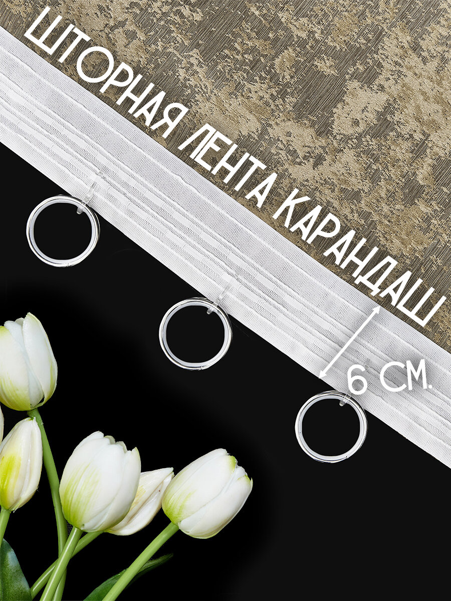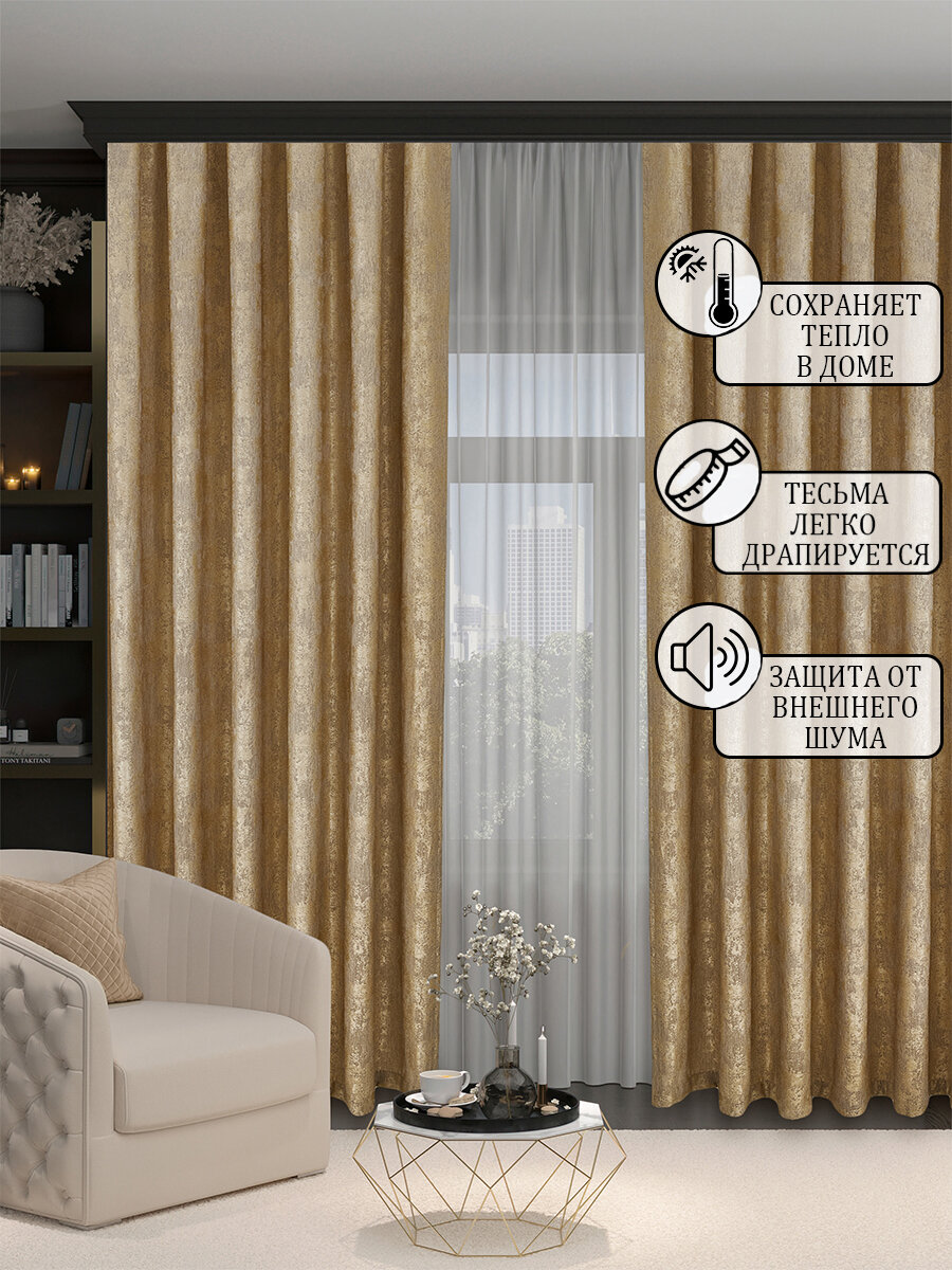 Готовая плотная интерьерная штора(портьера) софт мрамор 250x270 см.(1шт.) песочный