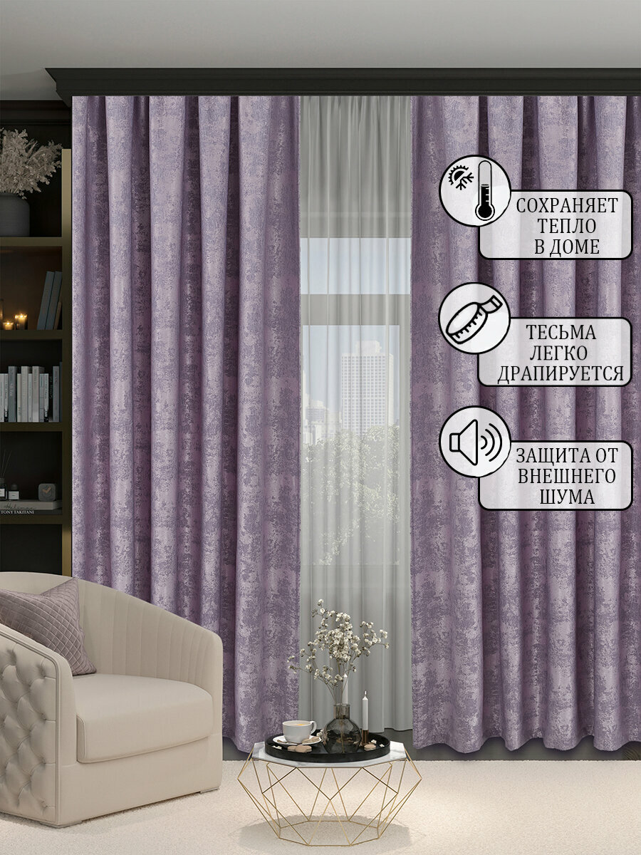 Готовая плотная интерьерная штора(портьера) софт мрамор 250x240 см.(1шт.) сиреневый