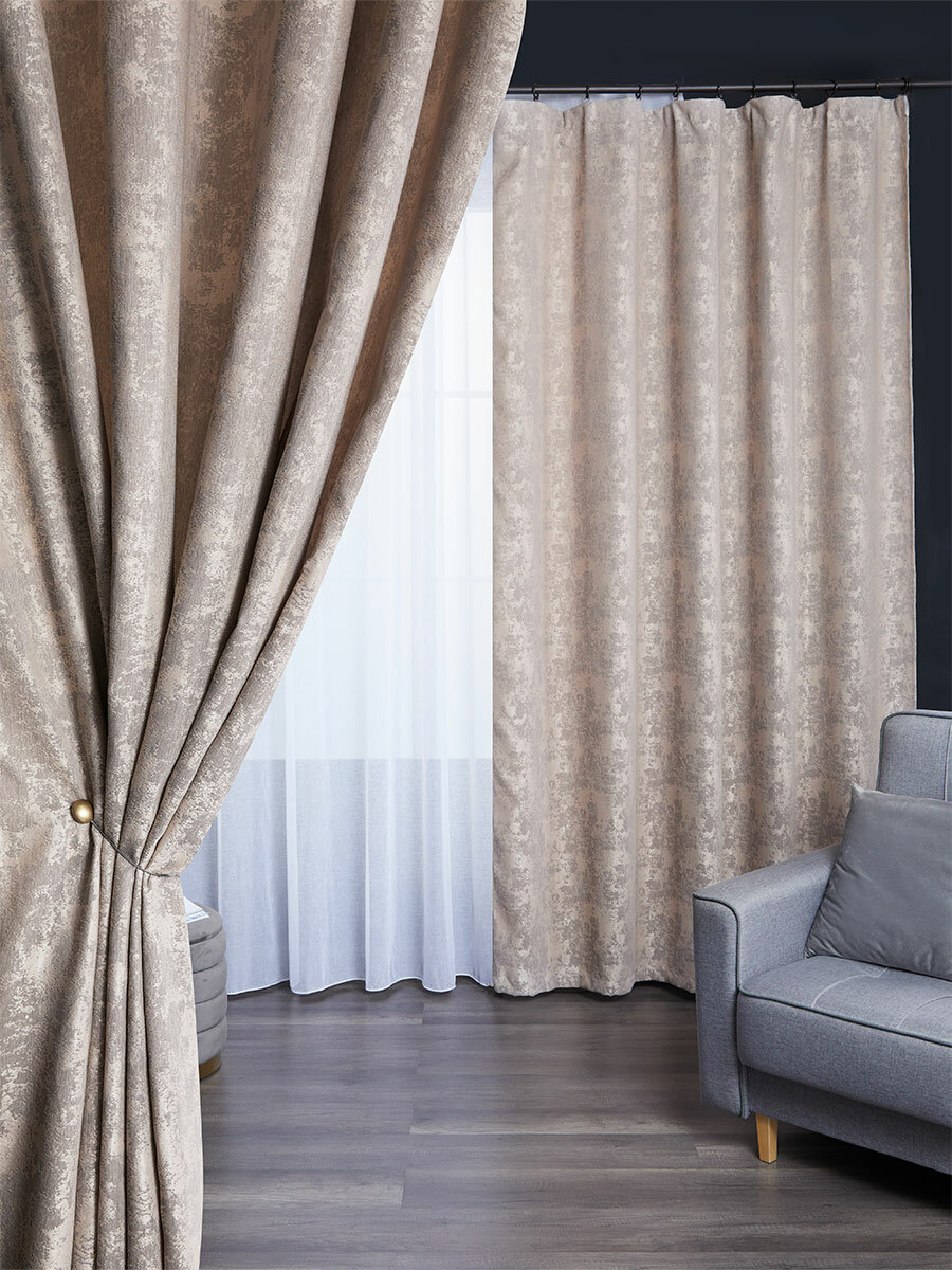 Готовая плотная интерьерная штора(портьера) софт мрамор 150x190 см.(1шт.) песочный