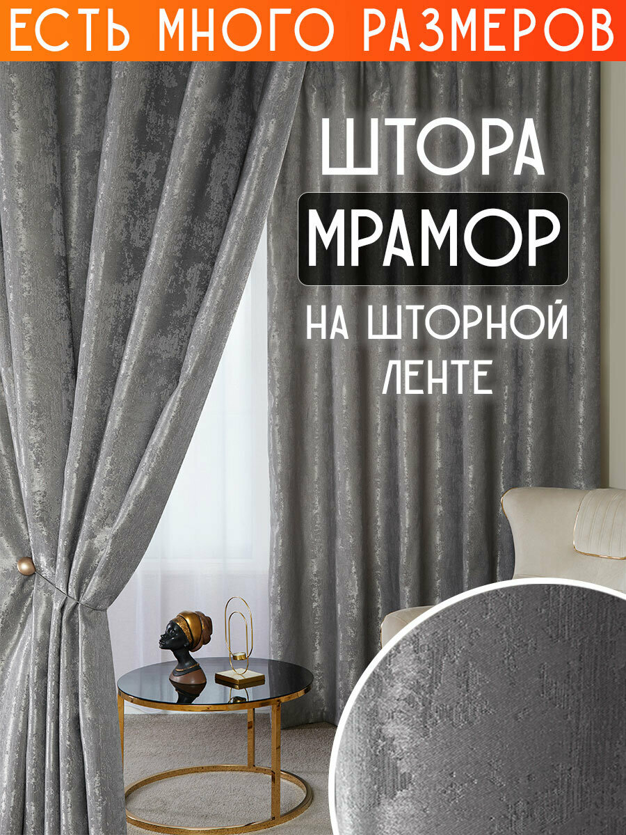 СохранитьГотовая плотная интерьерная штора(портьера) софт мрамор 200x200 см.(1шт.) светло-серый интересное: