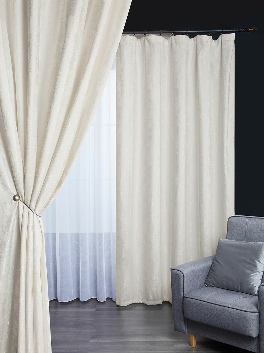 Готовая плотная интерьерная штора(портьера) софт мрамор 150x240 см.(1шт.) молочный