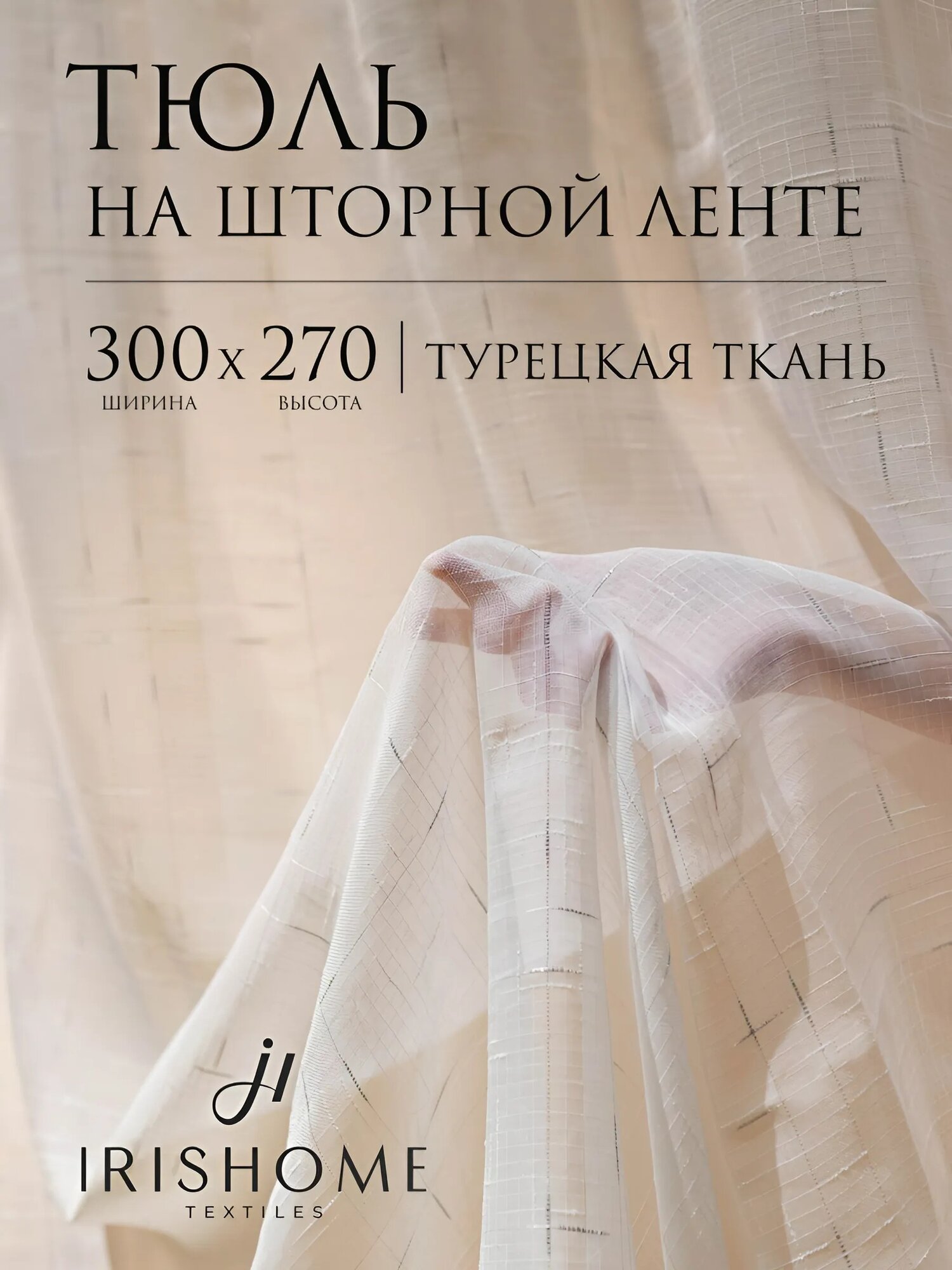 Тюль в гостиную спальню 300x270 см IRISHOME, бежевая, воздушная сетка
