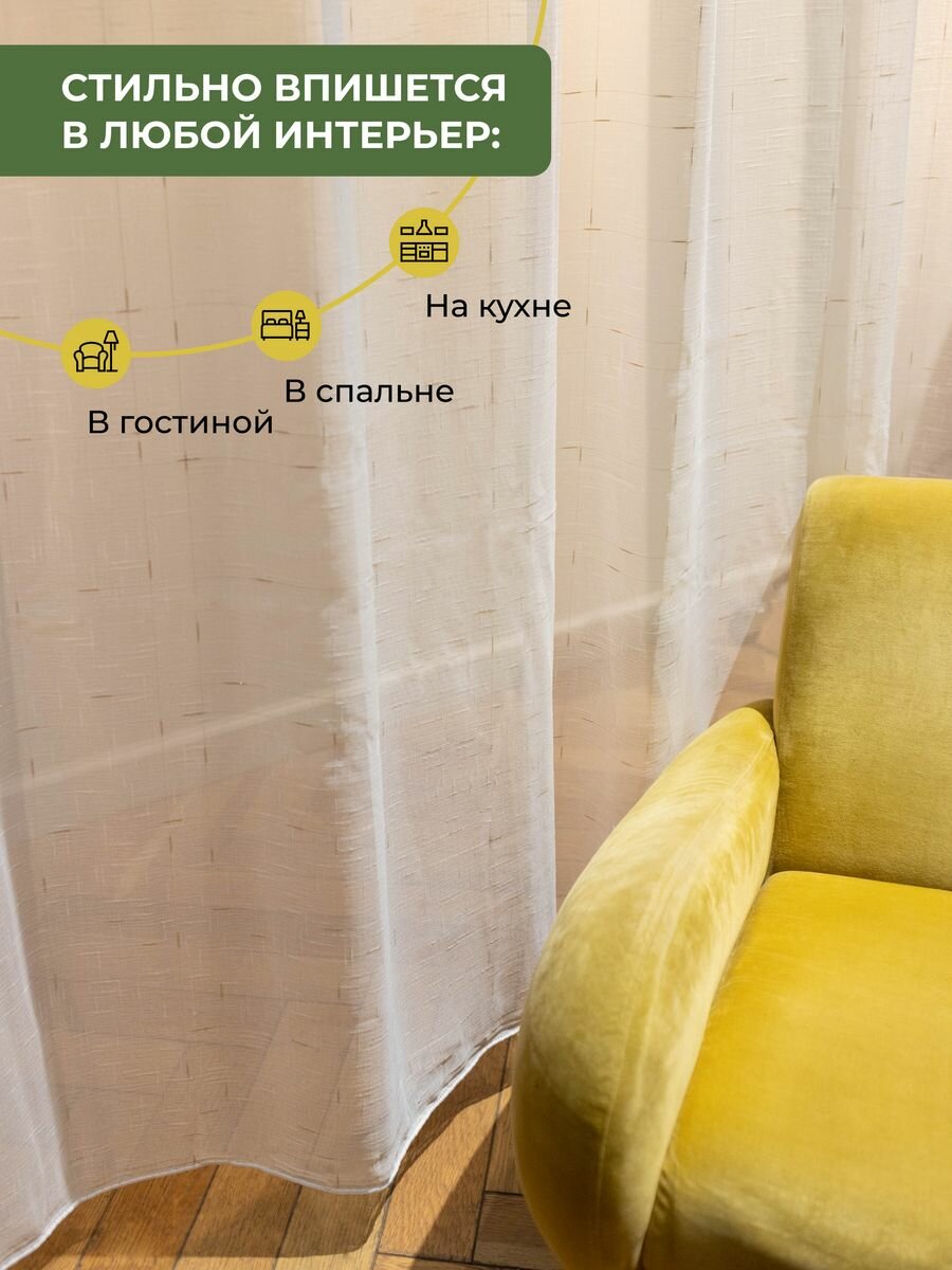 Тюль Лен с утяжелителем / Высота 250см Ширина 500см (2.5 на 5.0 м ) Тюль для кухни /Тюль в гостиную /Тюль в детскую /шторы