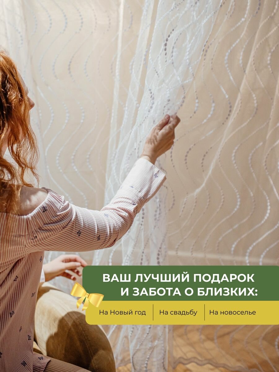 СохранитьТюль в гостиную спальню 500x270 см IRISHOME, цвет белый, рисунок вышивка волны интересное: