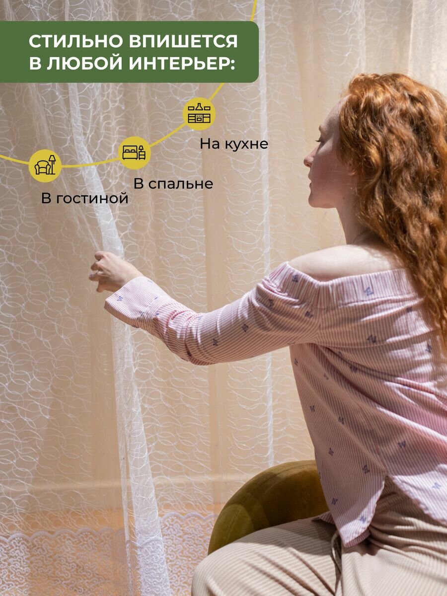 СохранитьТюль в гостиную спальню 500x270 см IRISHOME, белый цвет, рисунок вышивка паутинка интересное: