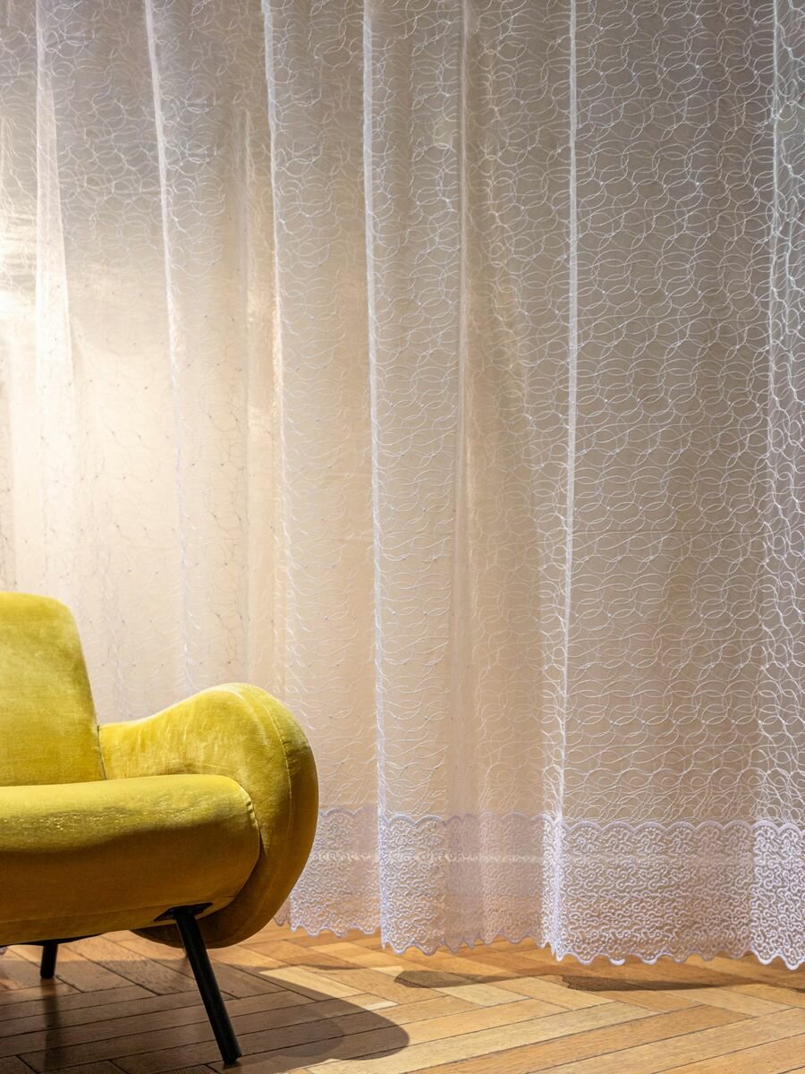 Тюль в гостиную спальню 500x270 см IRISHOME, цвет белый, рисунок вышивка волны