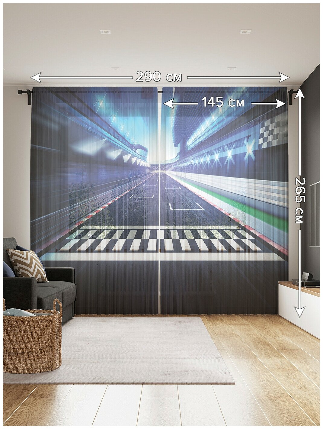 СохранитьТюль для кухни и спальни JoyArty "Ночной трек", 2 полотна со шторной лентой шириной по 145 см, высота 265 см. интересное: