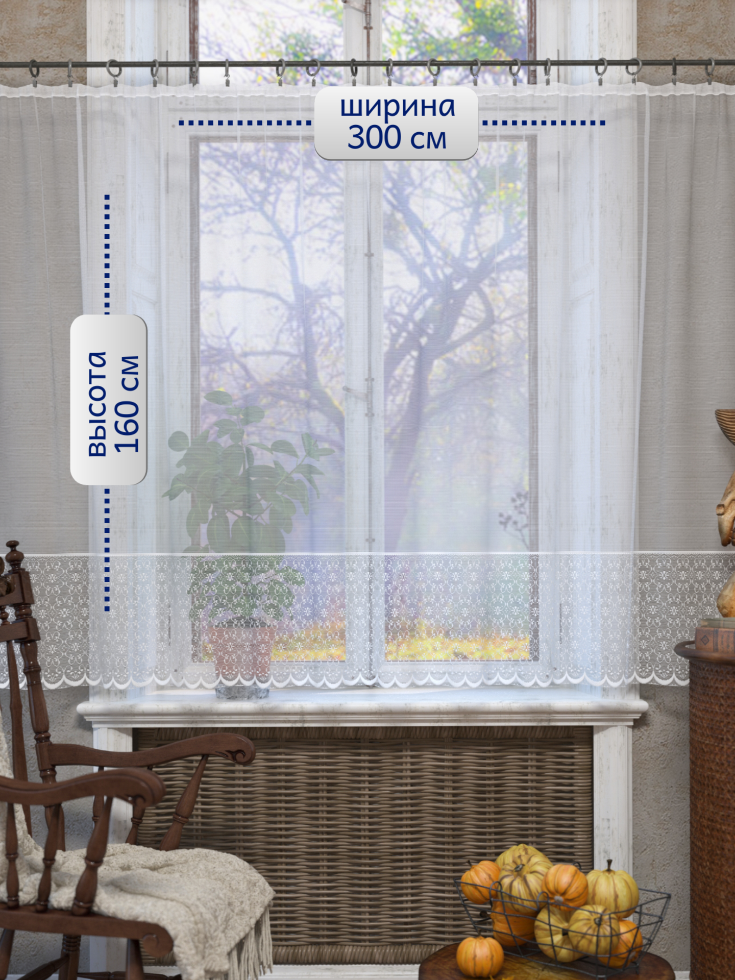 Купить Тюль для кухни со шторной лентой 160*300 см. Короткие занавески на кухню
