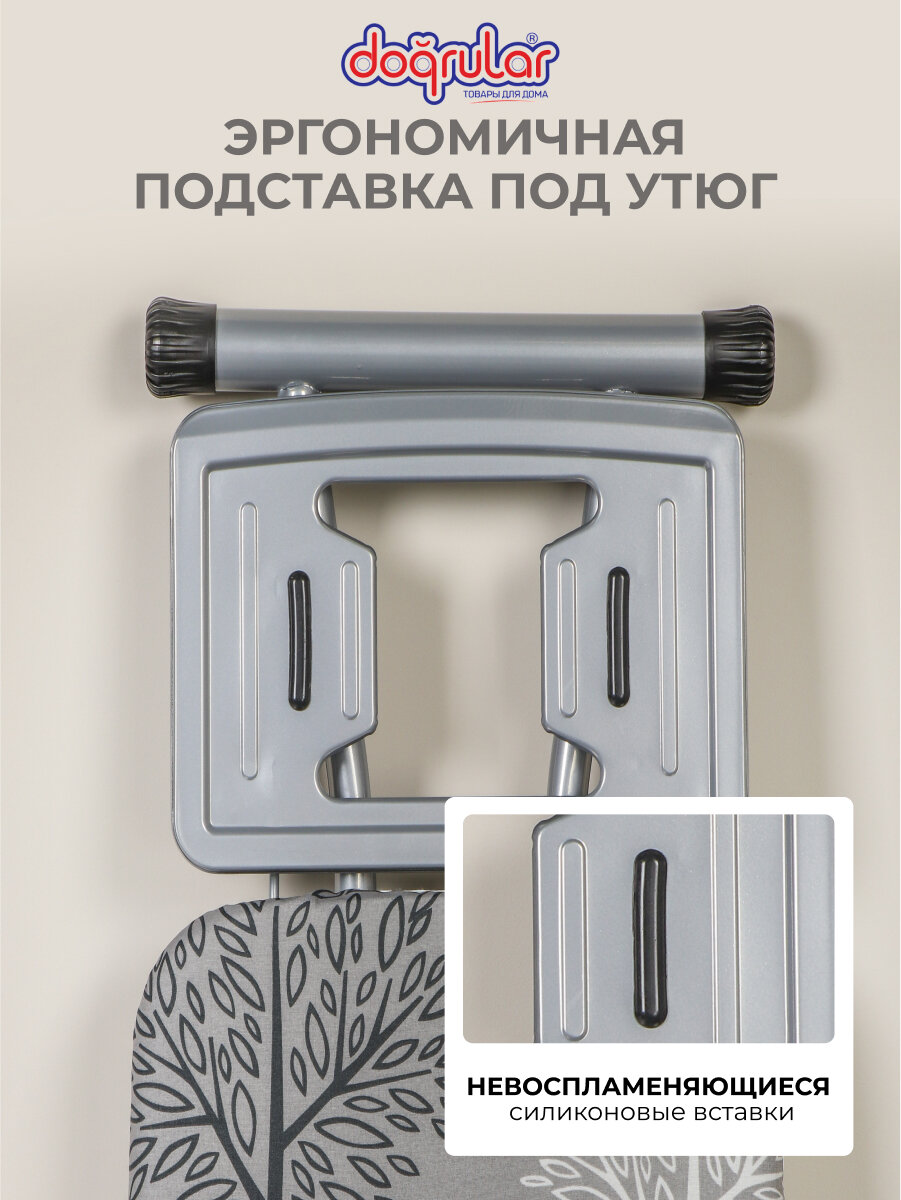 Доска гладильная Dogrular Элона 120×38 см с подставкой для утюга и розеткой, регулируемая, серая интересное: