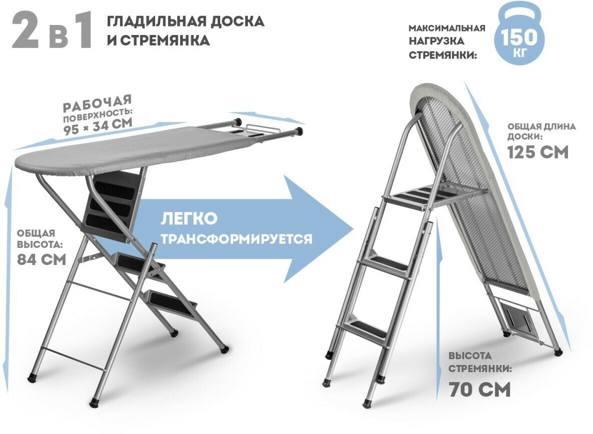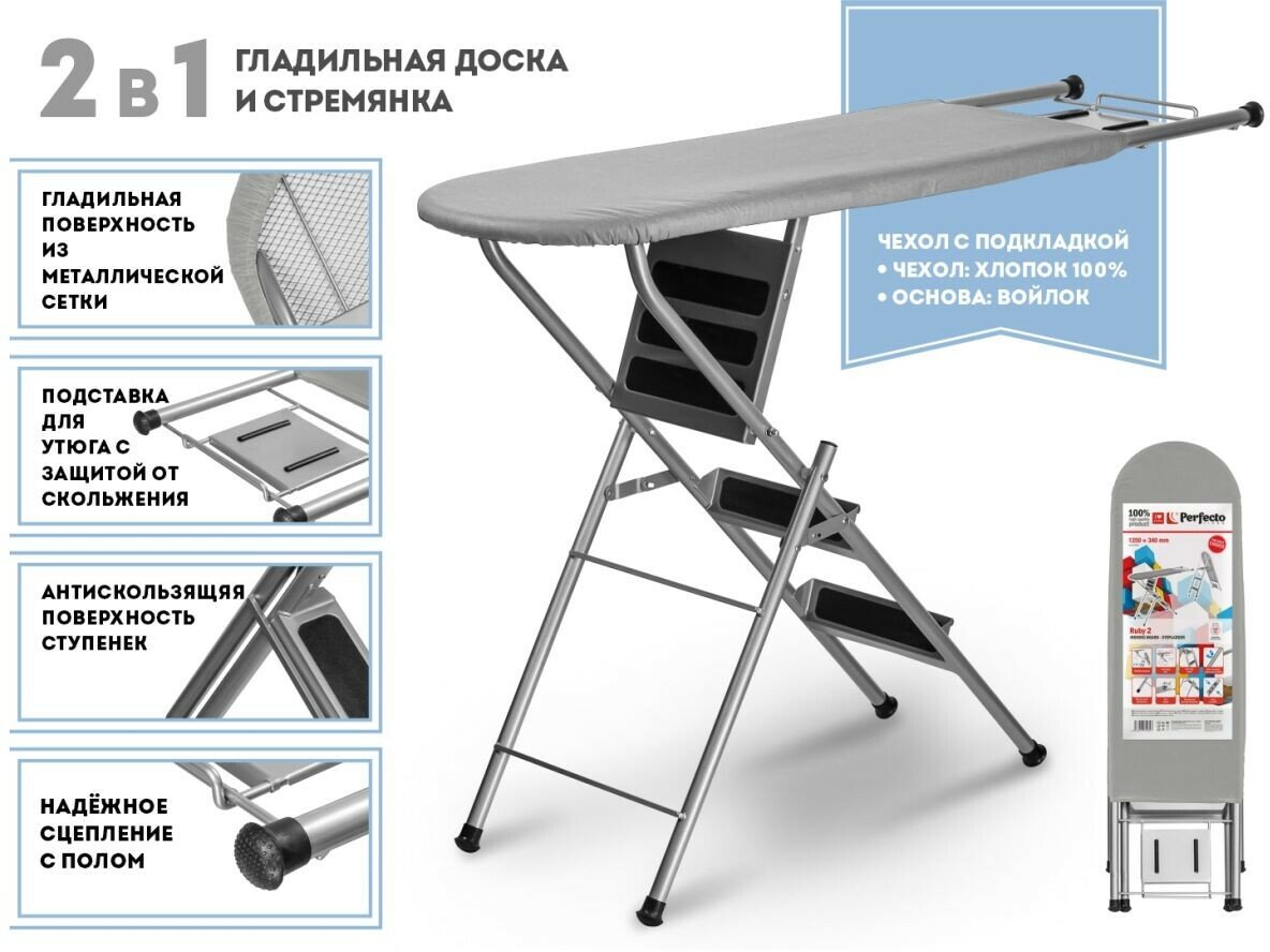 Гладильная доска стремянка напольная PERFECTO LINEA Ruby 1 125х34 см белый (42-142304) интересное: