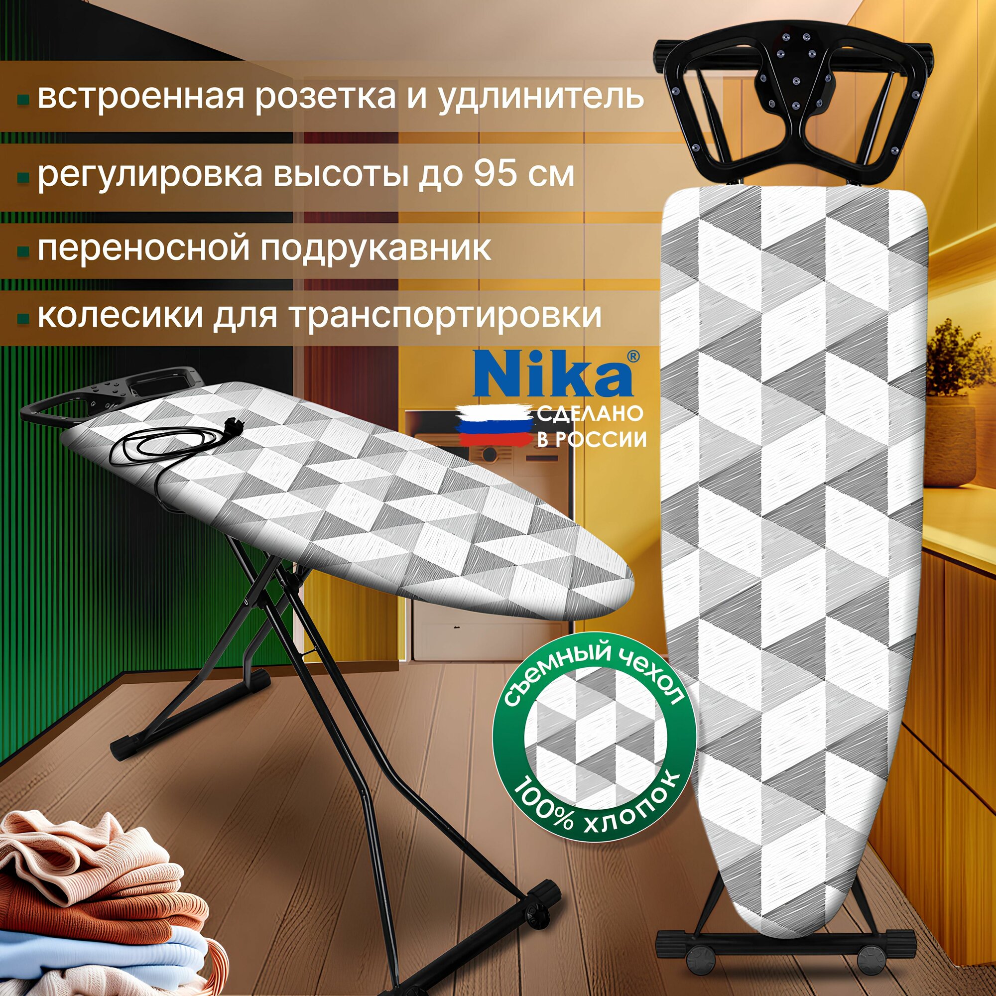 Гладильная доска напольная, с розеткой, с подставкой под утюг, Ника интересное: