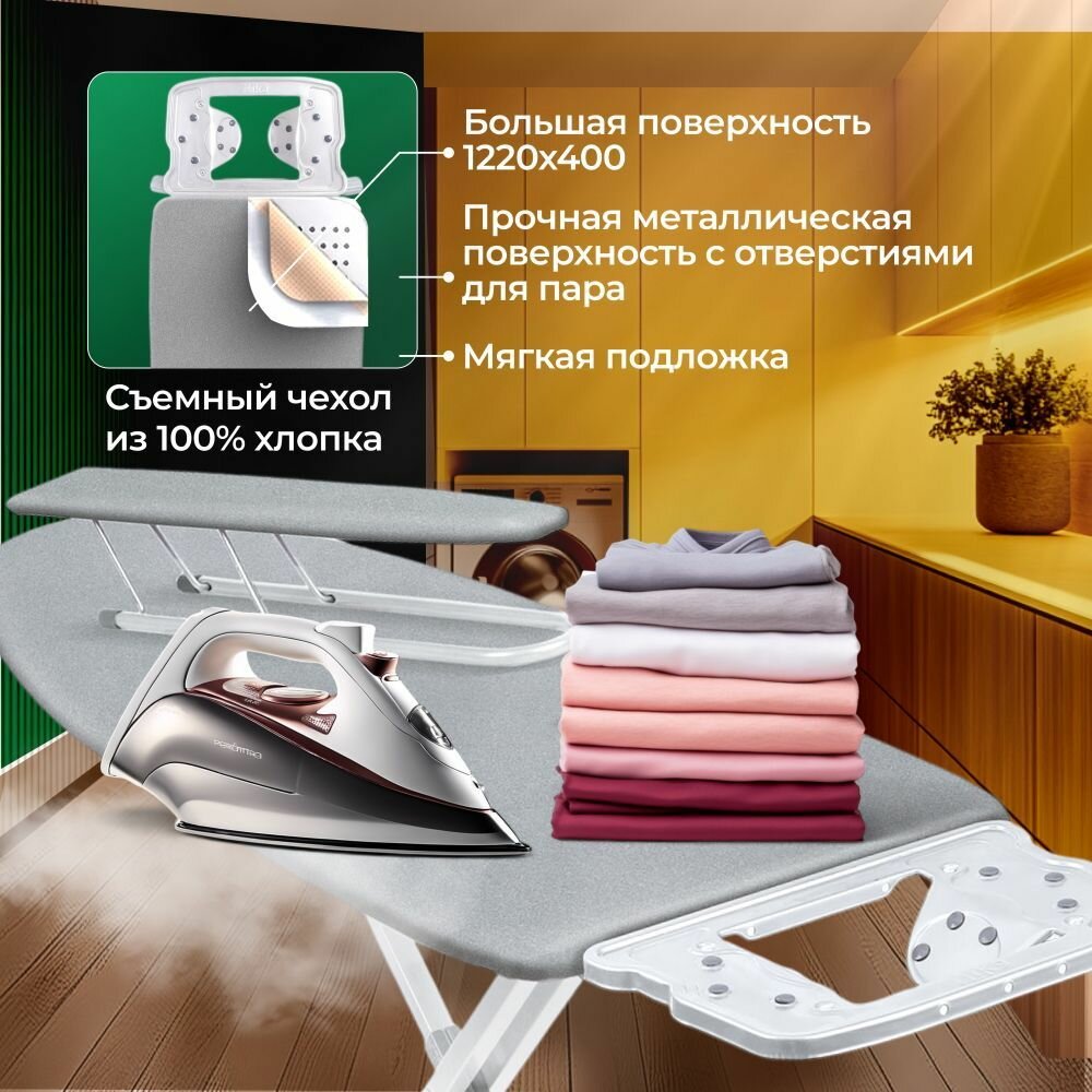 Купить Гладильная доска напольная, с розеткой, с подставкой под утюг, серебристый цвет, Ника