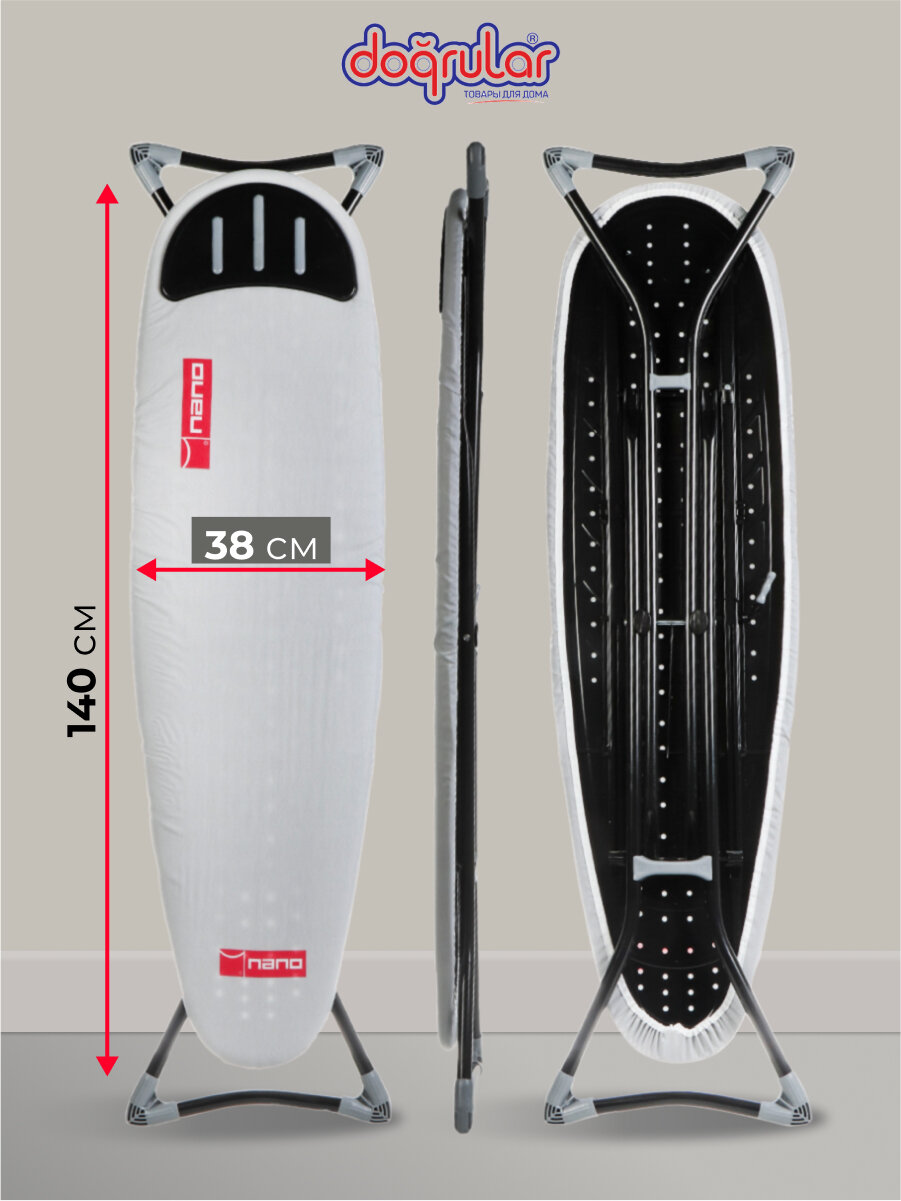 Гладильная доска Dogrular Нано 140х38 см, с подставкой для утюга, регулировка высоты, хлопковый чехол интересное: