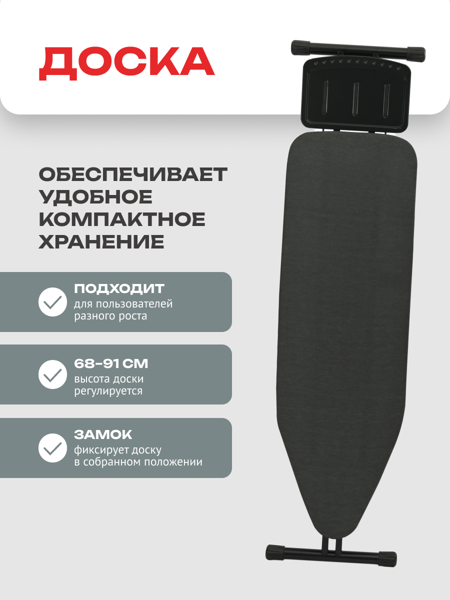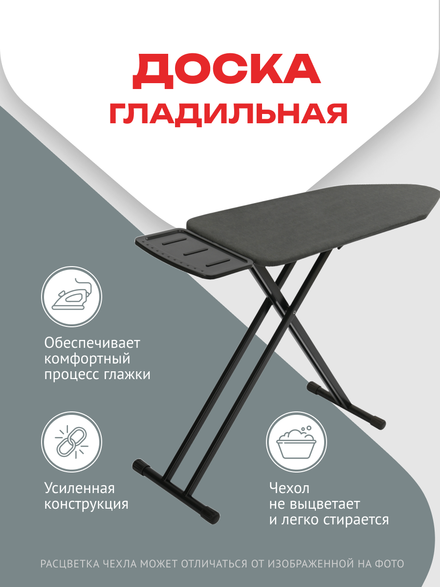 Гладильная доска 122х38 см, сетка, металл, цвет антрацит, черный интересное: