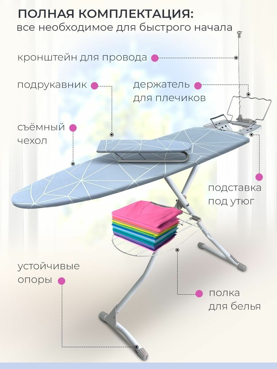 Гладильная доска Nika Гранд, металлическая, с регулировкой высоты, с полкой для белья