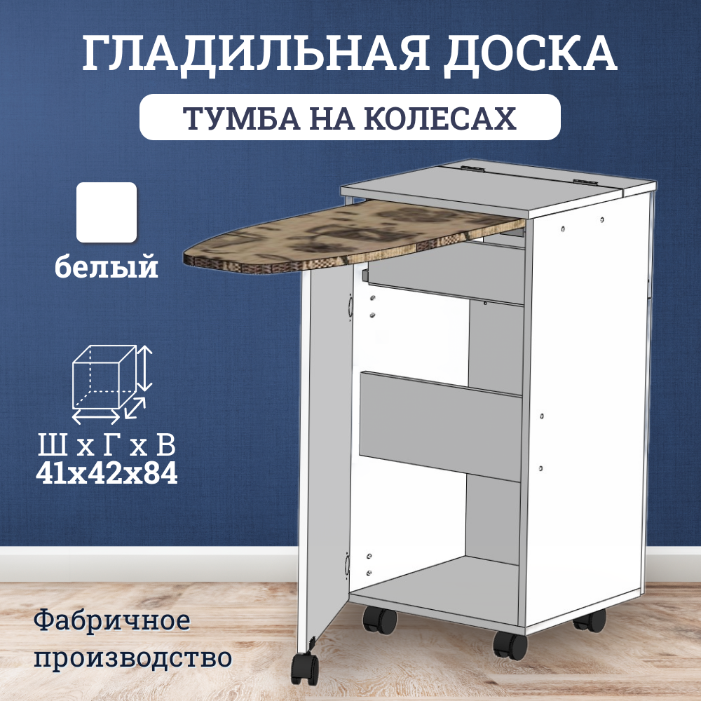 Гладильная доска на колесах стол тумба, цвет белый, 41х42х84 см интересное: