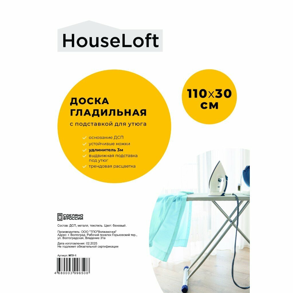 Доска гладильная 110х30 см напольная бежевая, с удлинителем 3 м, HouseLoft интересное: