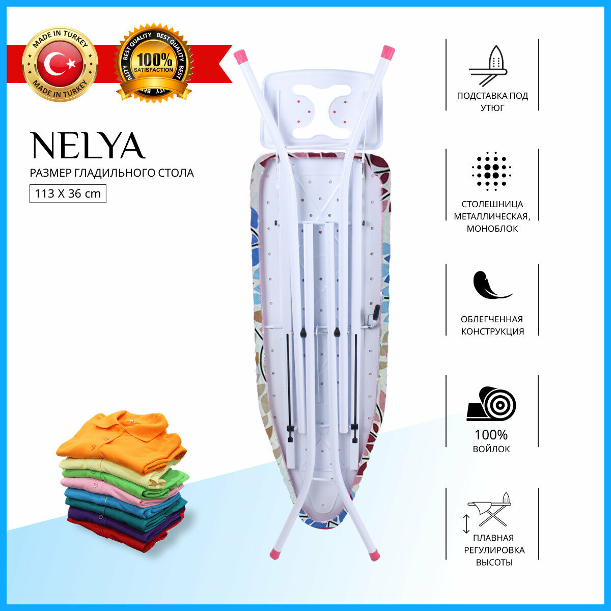 Гладильная доска KANAT: Nelya 113х36 см . Как на фото. интересное:
