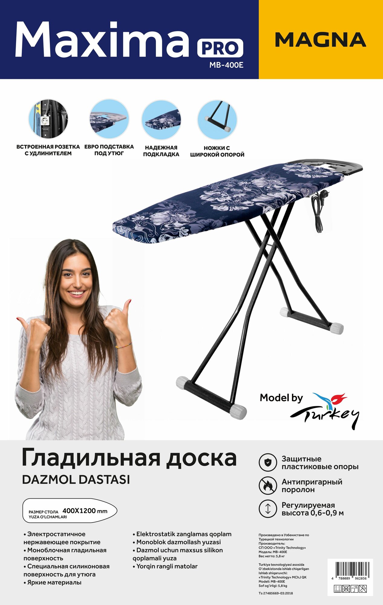 Ниже Вы можете прочитать отзывы на Гладильная доска MAGNA MB-400E Maxima Pro, ознакомится с подробными характеристиками, посмотреть интересные обзоры и фотографии на Гладильная доска MAGNA MB-400E Maxima Pro.
