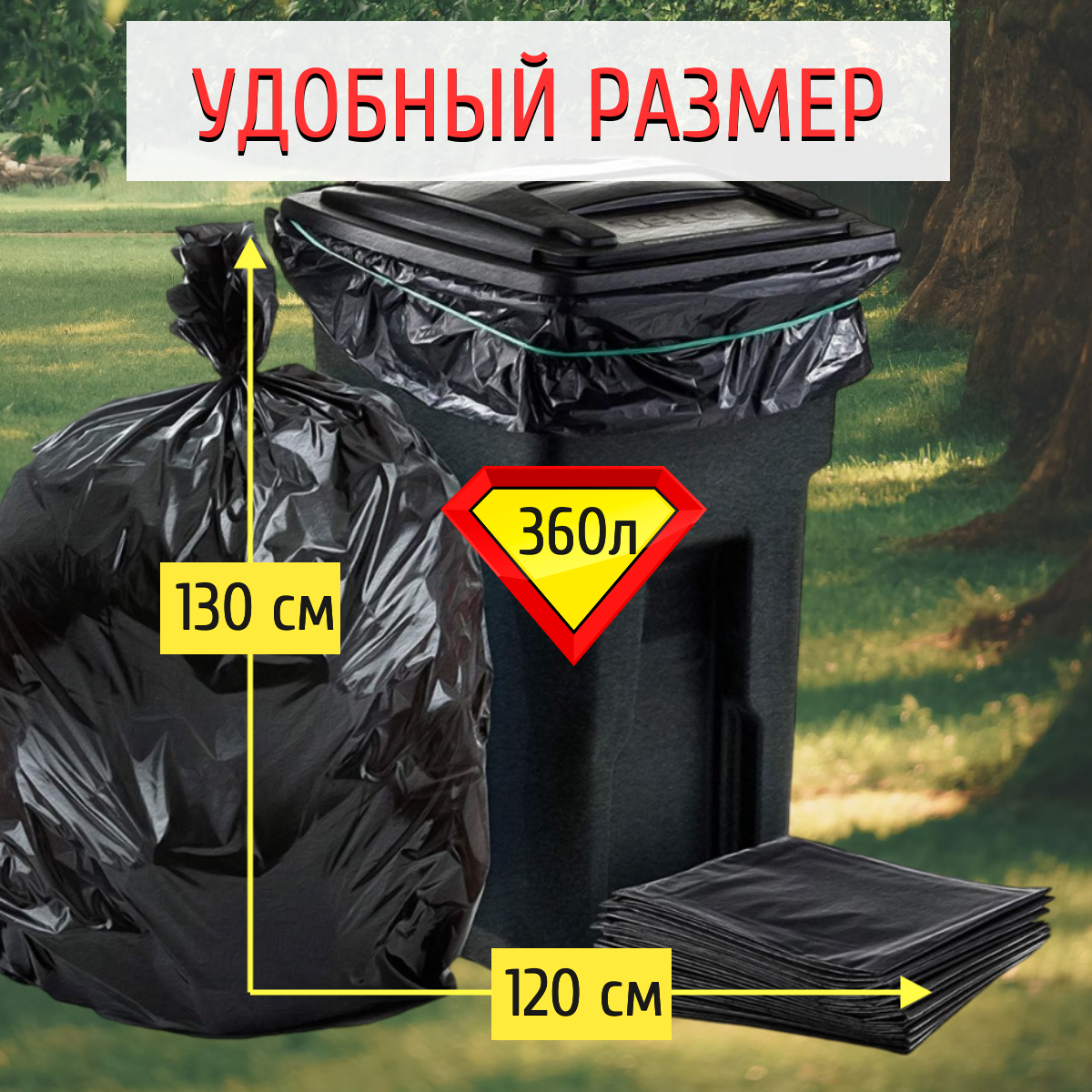 Мешок мусорный 360 литров, сверхпрочный, для строительного мусора, для уборки территории, для уборки после ремонта интересное: