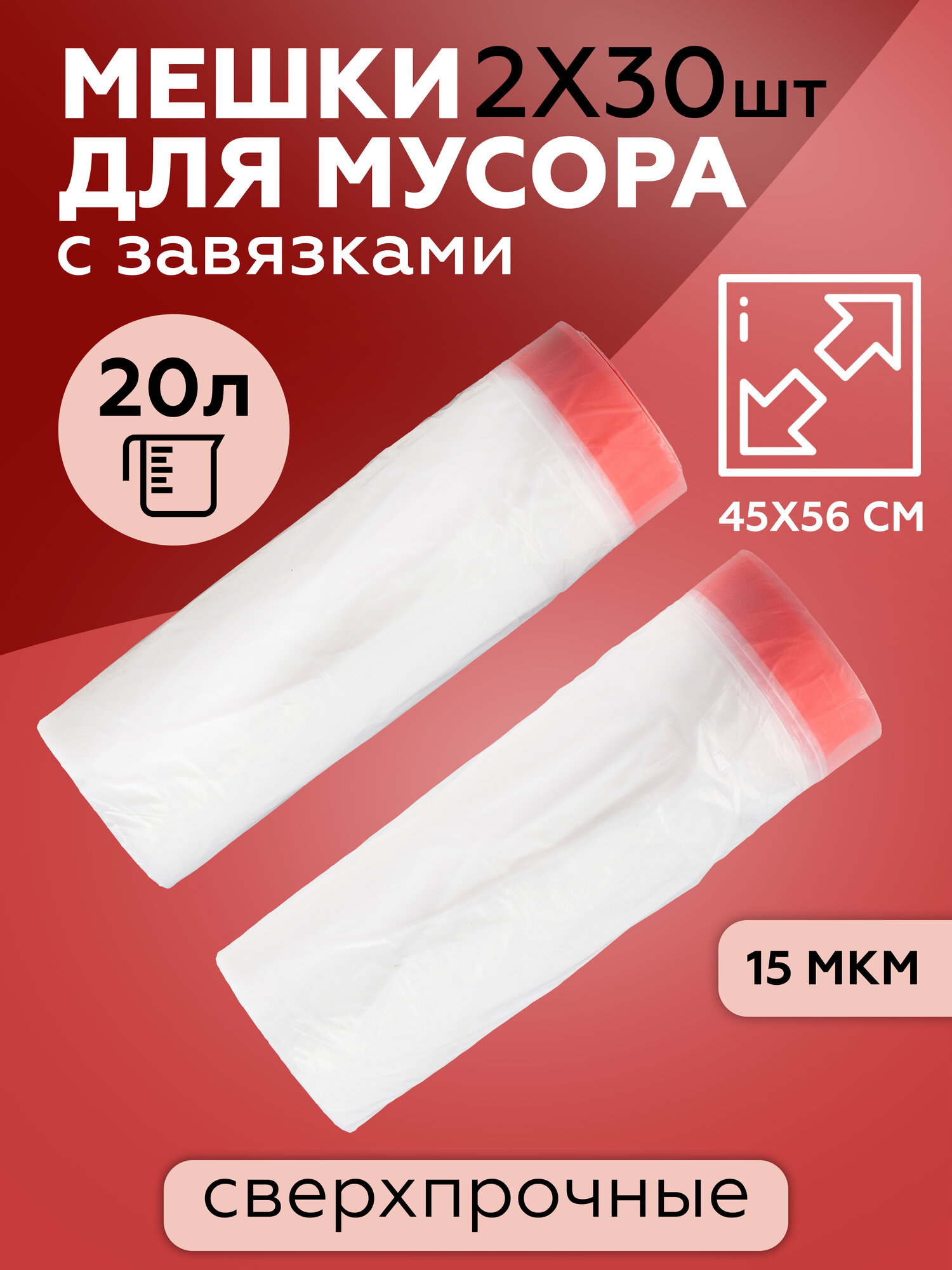 Мешки для мусора 20 литров с завязками 60 пакетов интересное: