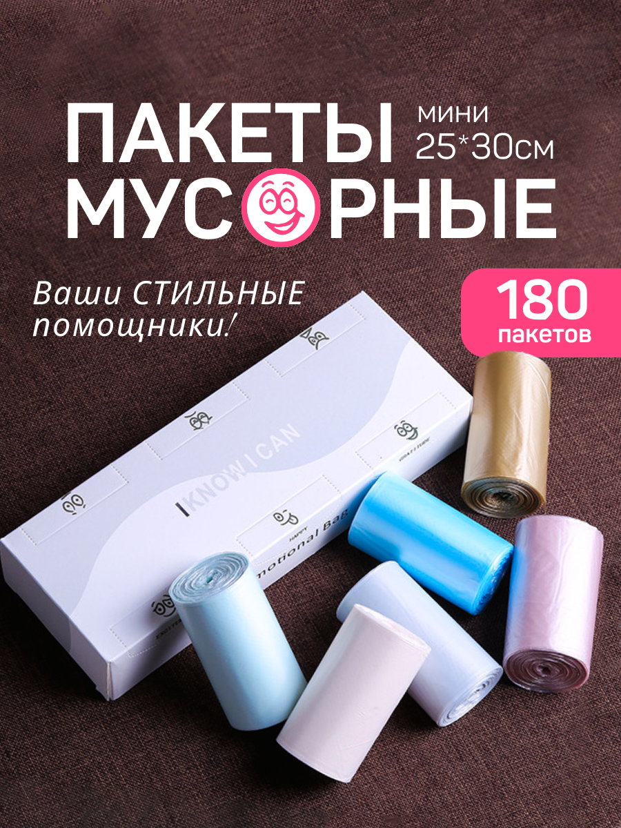Мешки для мусора 4л, пакеты мусорные в коробке, цветные 180 штук в упаковке интересное: