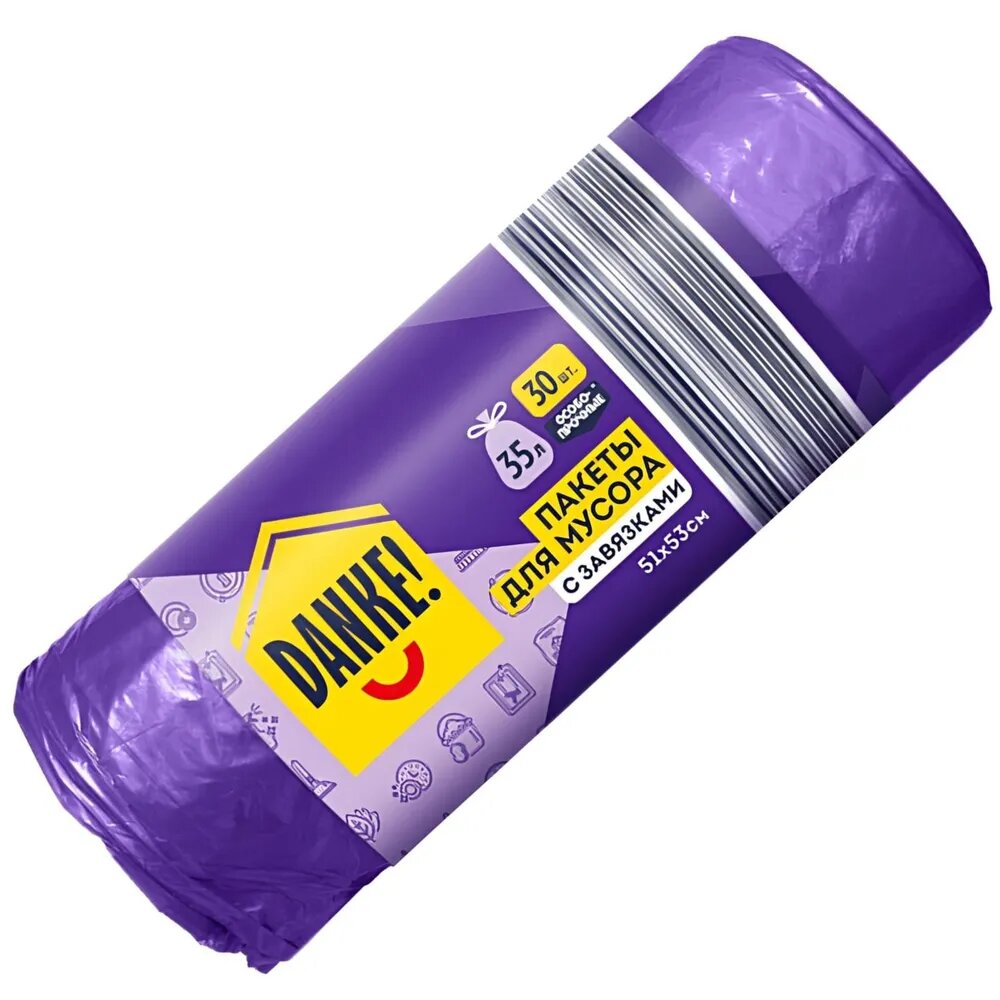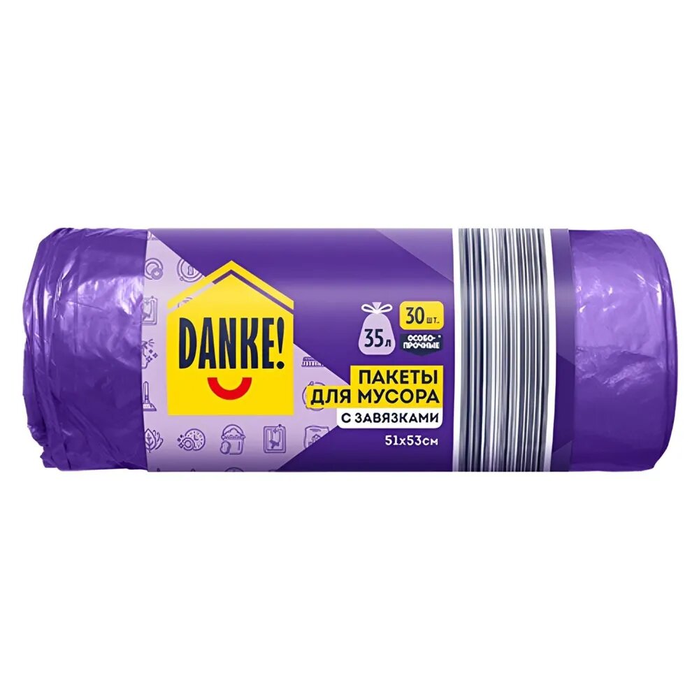 Пакеты для мусора DANKE! с завязками, особопрочные 35 л, 30 шт. интересное: