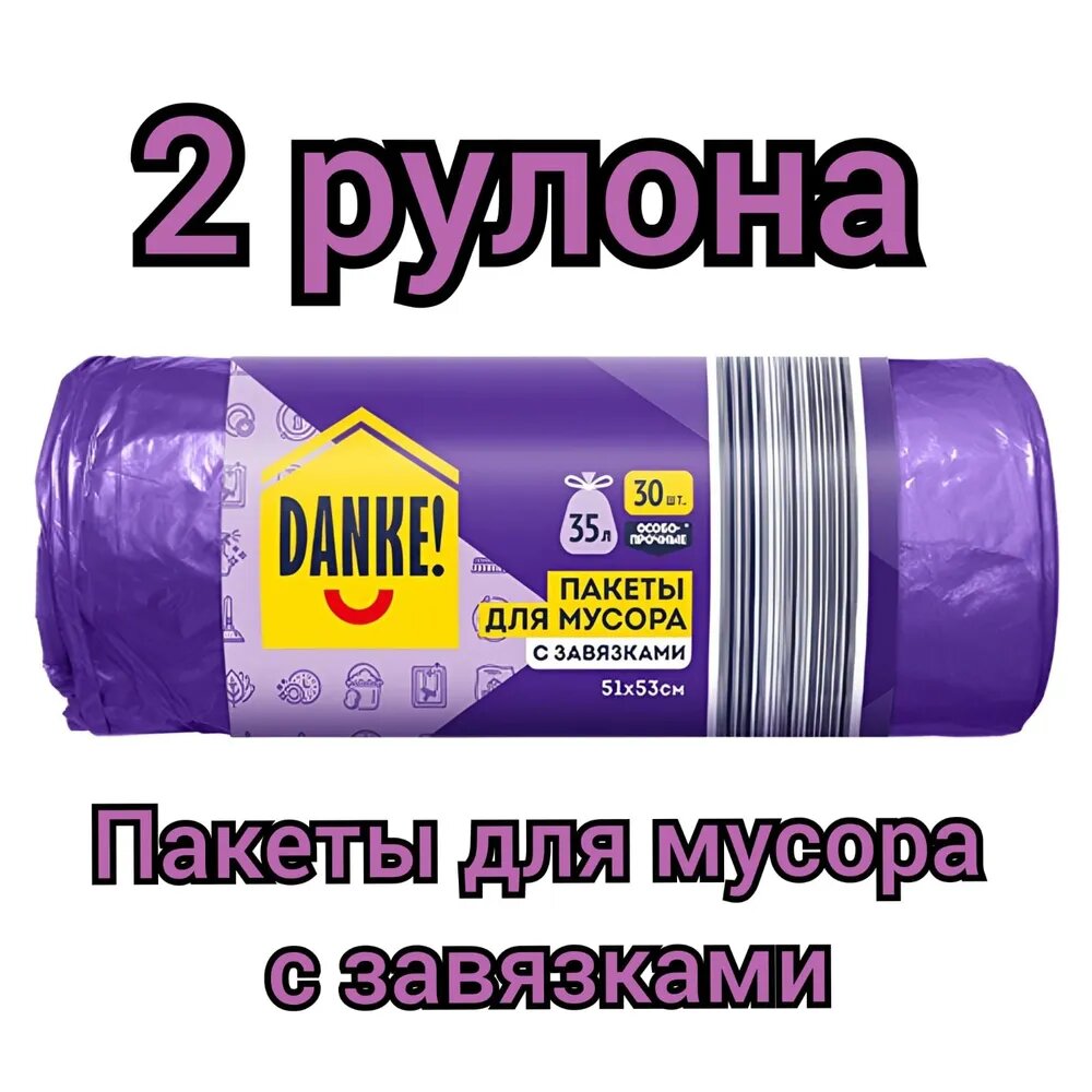 Купить Пакеты для мусора DANKE! с завязками, особопрочные 35 л, 2 рулона по 30 шт.