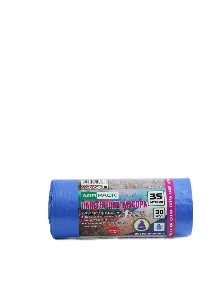 Пакеты для мусора MirPack vip, 35л, с завязками, синие, полиэтилен
