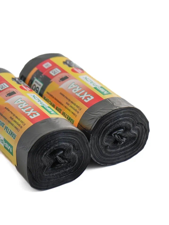 Купить Мешки для мусора MirPack extra, сверхпрочные, черные, 60л, полиэтилен, 2 рулона