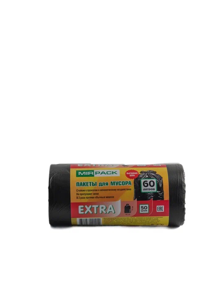 Мешки для мусора MirPack extra, сверхпрочные, черные, 60л, полиэтилен, 2 рулона интересное:
