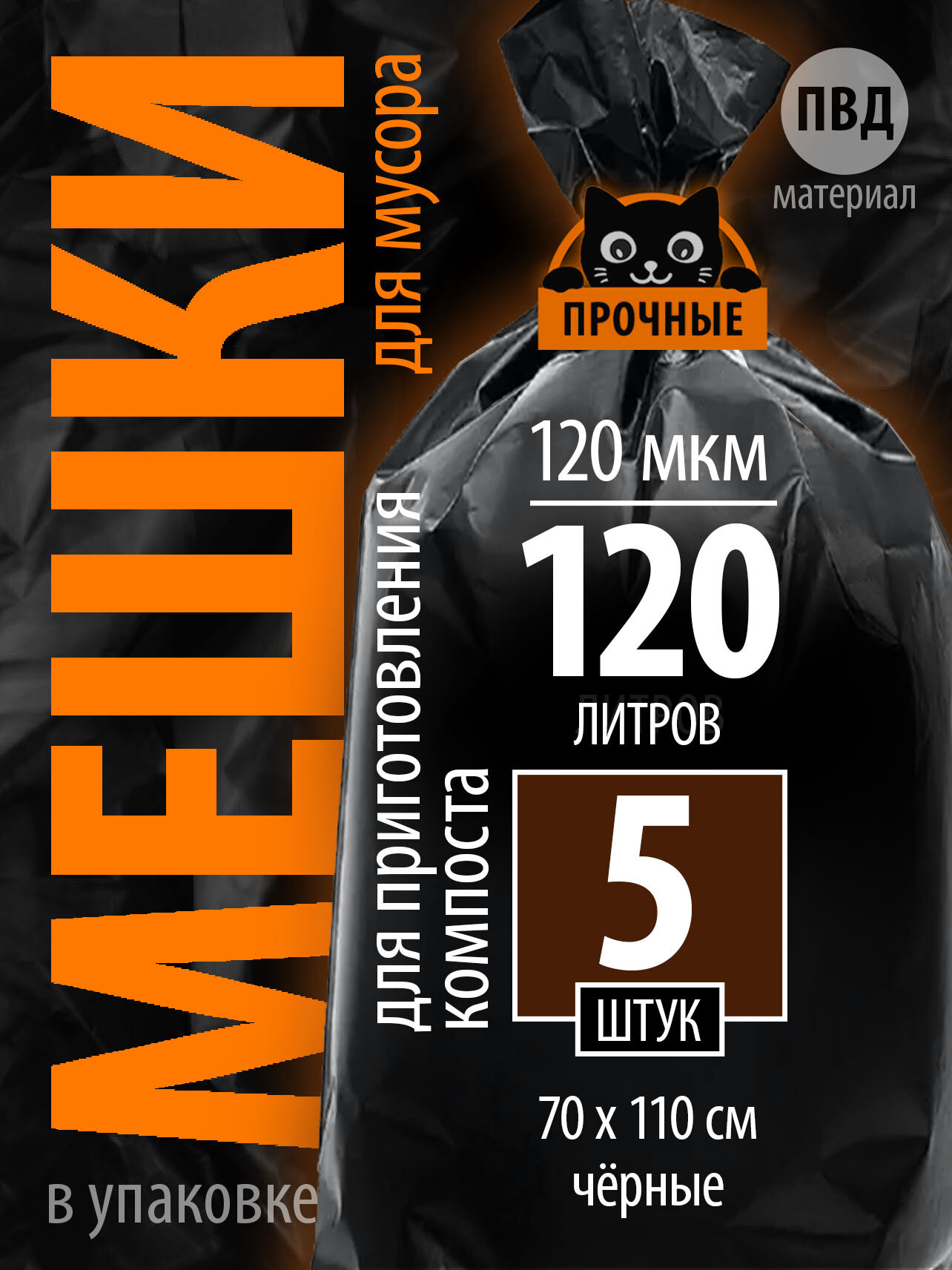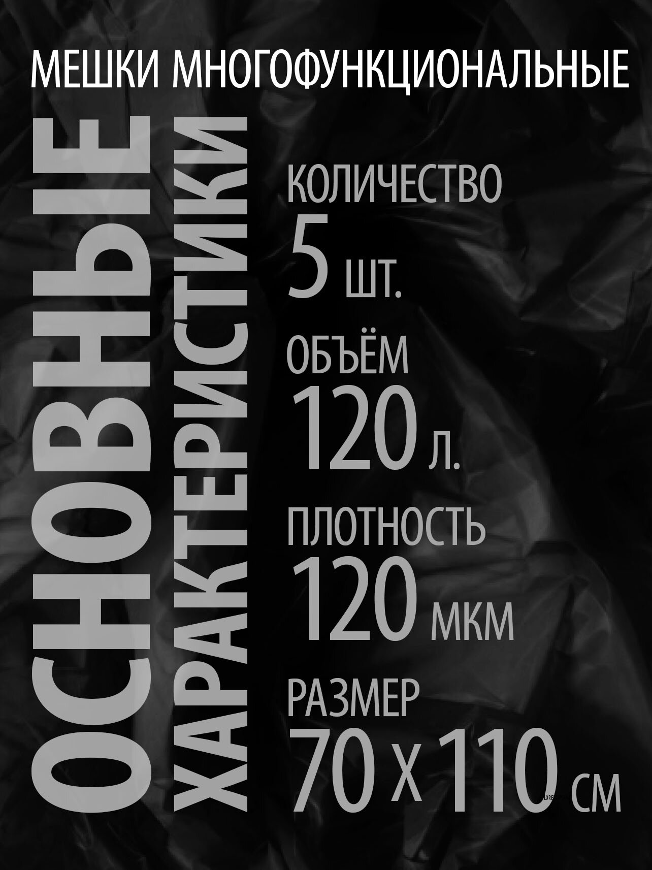 Мешки для мусора прочные 120 литров, в упаковке 5 штук, ПВД, 120 мкм, размер 70х110 см, черные интересное: