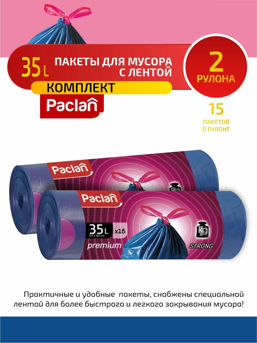 Мешки для мусора Paclan Premium 35 литров 2 рулона по 15 мешков интересное: