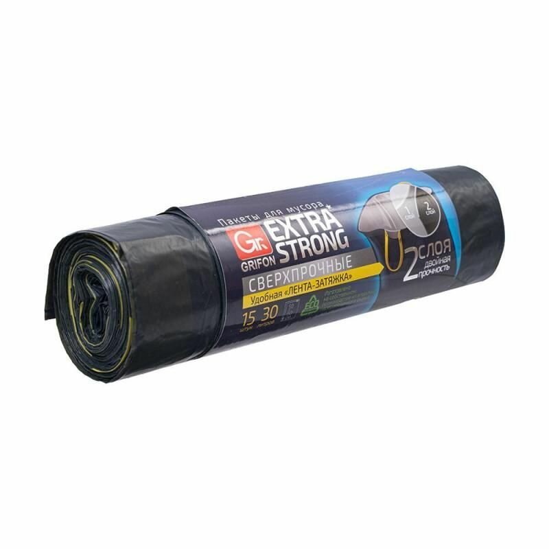 Купить Пакеты для мусора с затяжками Grifon двухслойные 30 л 15 шт.