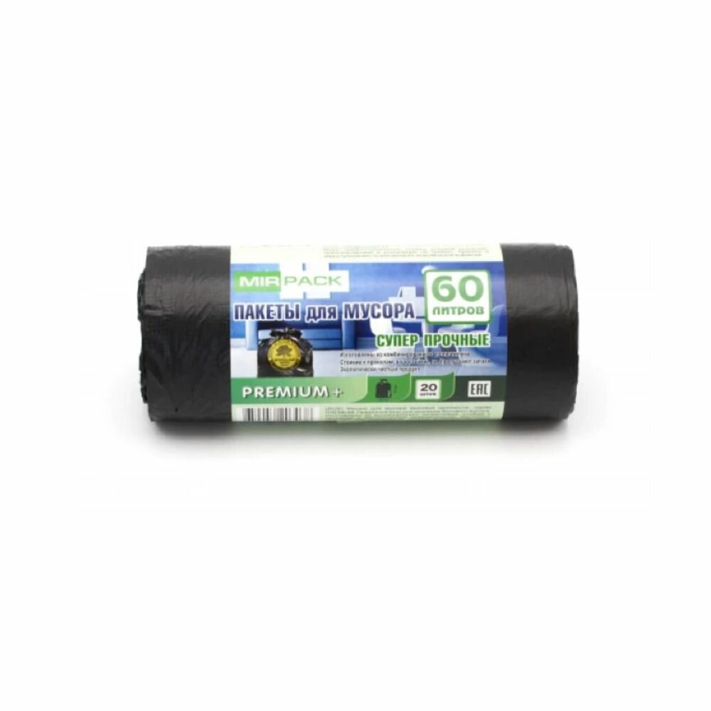 MirPack Мешки для мусора Premium+ черные на 60 л, ПСД 20 мкм, 20 шт, 2 рулона интересное: