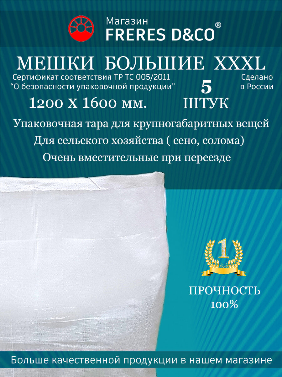 Мешки большие. Для крупногабаритных вещей и сельского хозяйства 1200x1600мм. 410л. 5шт. интересное: