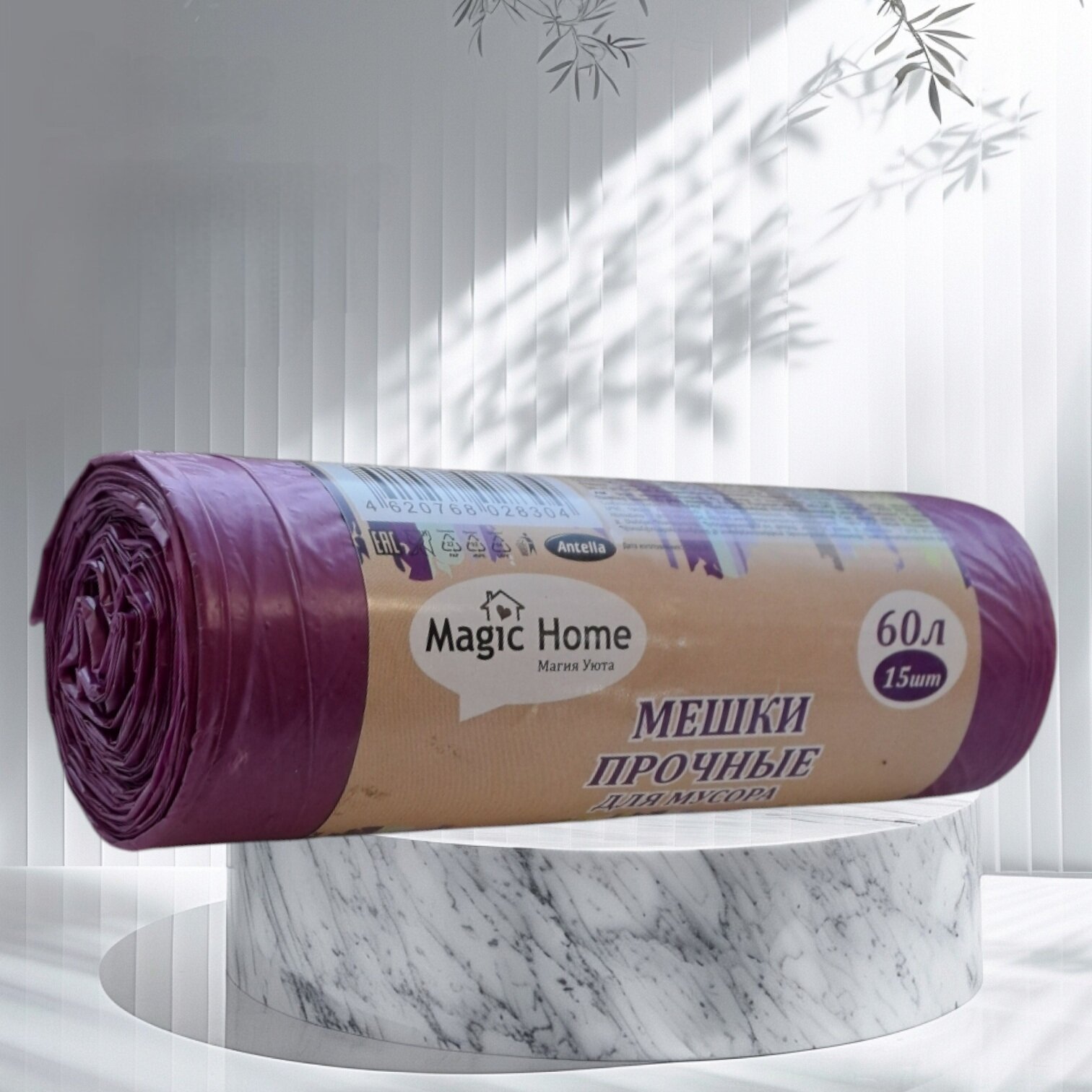 Мешки для мусора 60 литров, 15 шт фиолетовые , сверхпрочные, в ролике, Аntella интересное: