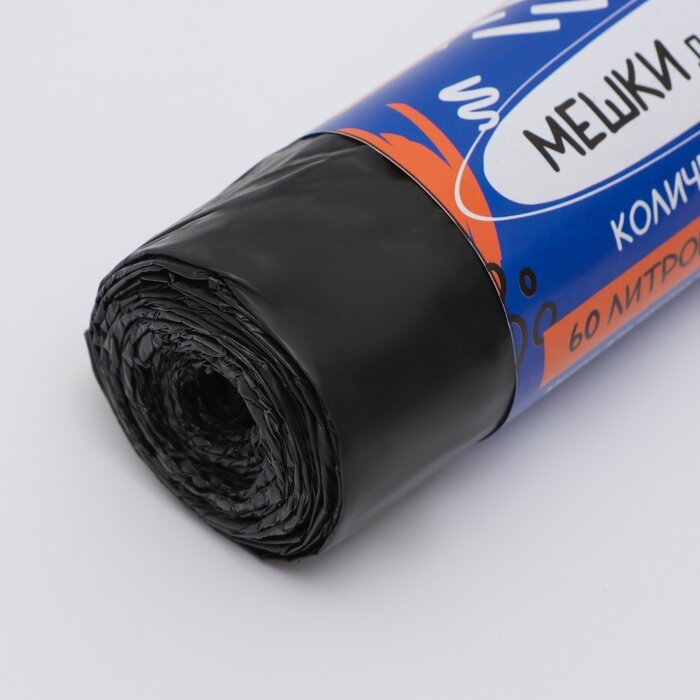 Мешки для мусора в рулоне "UpakLand" 60 л, черные, ПНД, толщина 15 мкм, 20 шт
