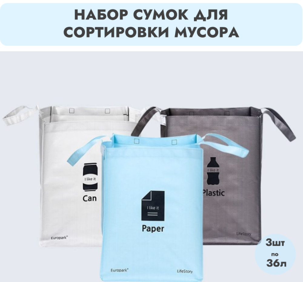 Ниже Вы можете прочитать отзывы на Комплект сумок для раздельного сбора мусора 3 х 36 литров, серый, голубой, темно-серый, ознакомится с подробными характеристиками, посмотреть интересные обзоры и фотографии на Комплект сумок для раздельного сбора мусора 3 х 36 литров, серый, голубой, темно-серый.