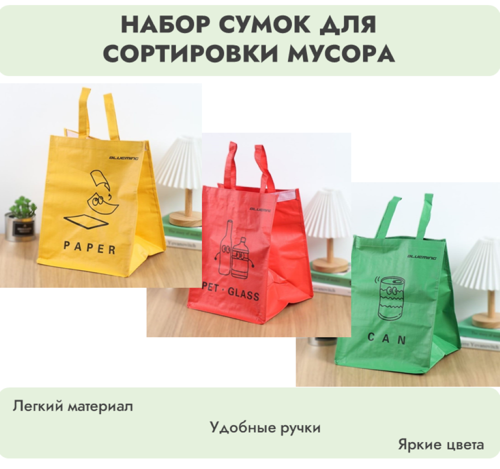 Ниже Вы можете прочитать отзывы на Комплект сумок для раздельного сбора мусора 3 х 36 литров, желтый, красный, зеленый, ознакомится с подробными характеристиками, посмотреть интересные обзоры и фотографии на Комплект сумок для раздельного сбора мусора 3 х 36 литров, желтый, красный, зеленый.
