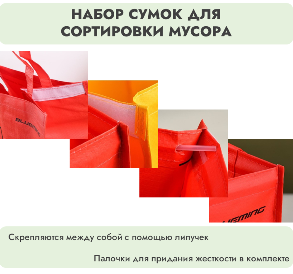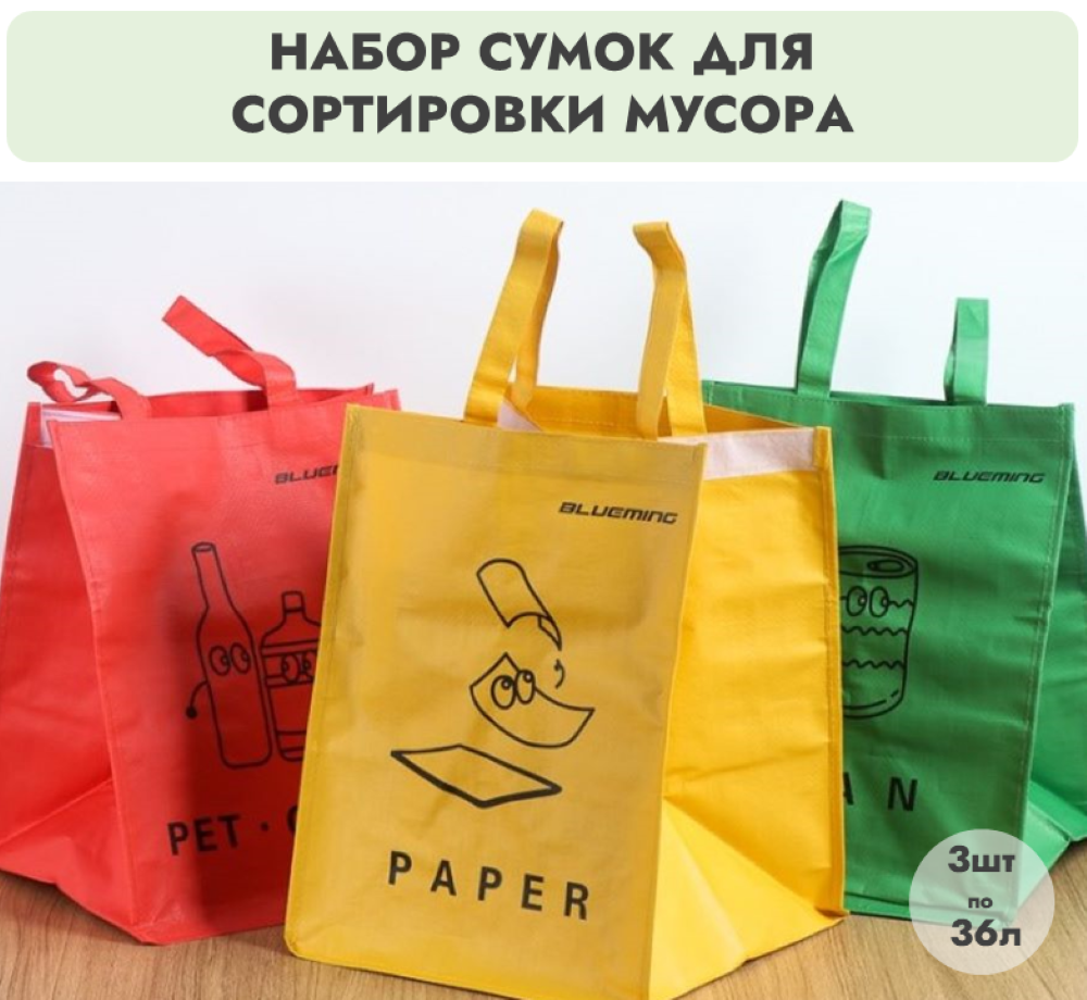 Комплект сумок для раздельного сбора мусора 3 х 36 литров, желтый, красный, зеленый интересное: